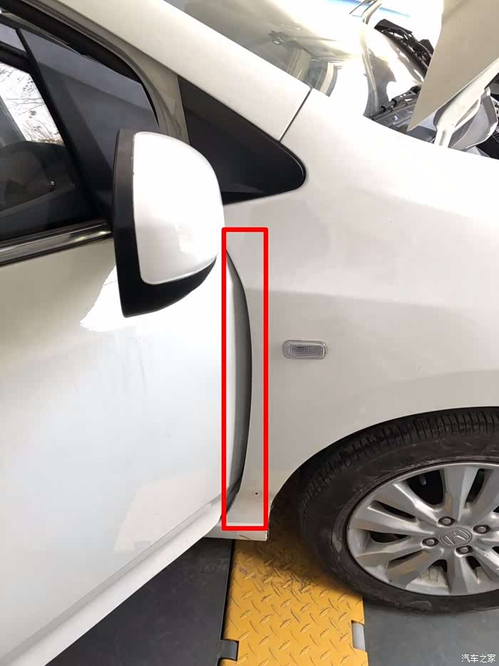 第一步 打开车门,可以看到车门和翼子板缝隙内侧