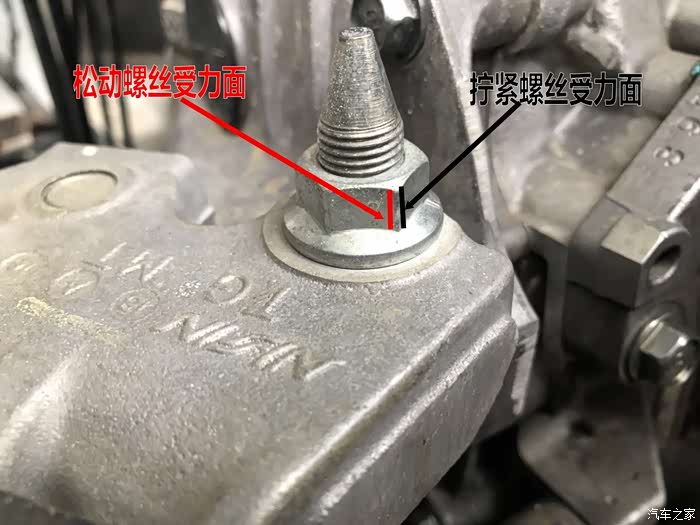 如果要抬发动机,基座上的螺丝均需要拆卸,这个螺丝没有拆卸,发动机大修可能性已经较低了,但是不可大意,要排除看走眼或者精修螺丝的可能,其他的连接螺丝要辅助进行判断,螺丝怎么看,各位心里都能回想起来吗?这种是不带漆面的螺丝,所以看漆面的方法已经失效,我们看什么?是看螺丝的受力面有没有松动的痕迹,疑惑的小伙们不要惊慌,下面还有配图,仔细看看
