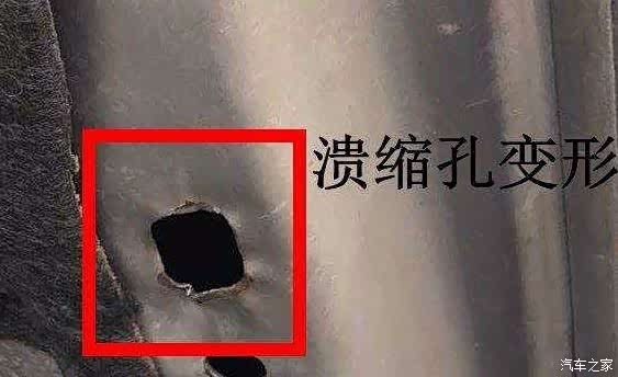 排除整体更换和拒不更换后,最后还要确认纵梁有没有变形啦,纵梁上的那些方形圆形的小孔,不知道大家有没有注意到呢?很多小伙伴要说了,整这么多孔是不是偷工减料哦!其实这个孔是很有来头的,它的学名叫溃缩孔,是引导变形重要的组成部分,当受到外界强烈碰撞时,这些小孔部分属于整体纵梁的“缺陷”部分,在此部分应力集中,首先变形,因此,在碰撞中,纵梁最终会一段一段“揉”在一起,吸收碰撞中巨大的能量,如果没有这些小孔,这些能量会直接传导到驾驶舱,严重危及乘员安全,所以,溃缩孔是很重要且必须的哈!那么答案很明显了,在碰撞中,小孔部分首先发生变形,所以小孔的形状是不是规整就是最简单直接的依据