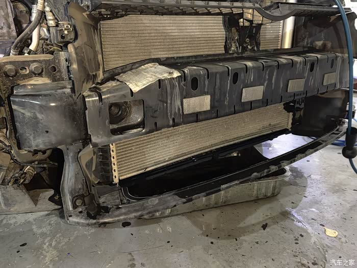 6. 拆卸清洗空调冷凝器,增压空气冷却器和发动机散热器,需要拆中网,前保险杠杠,大灯,前防撞梁