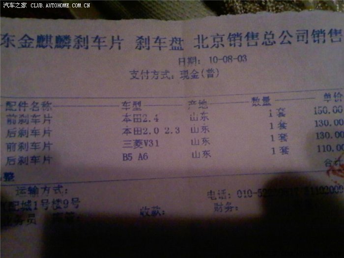 另外特此补充说明:现在此刹车片前片(一对)的拿货价格为130元