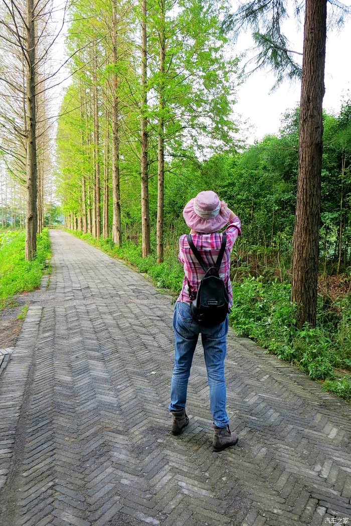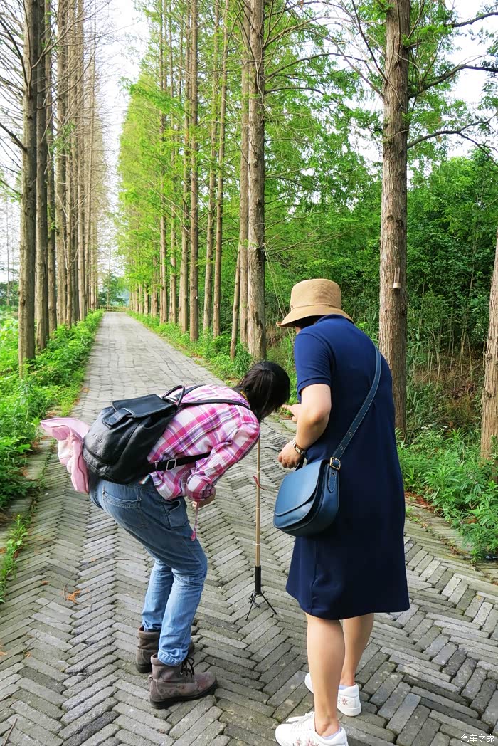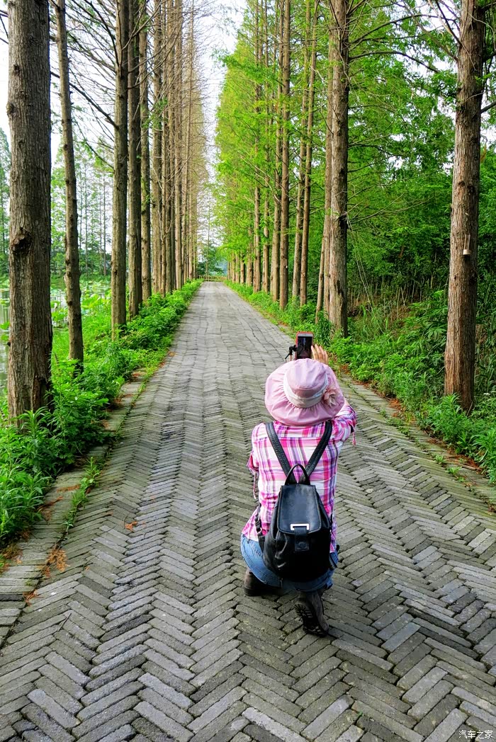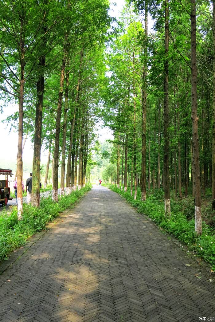 我们车停景区大门外林间,遮天蔽日的水杉丛林,仿佛天然氧吧。