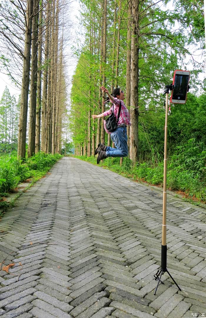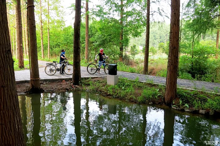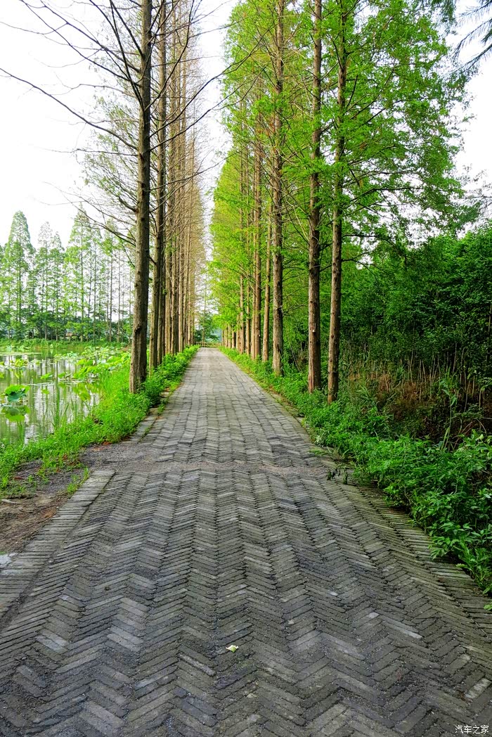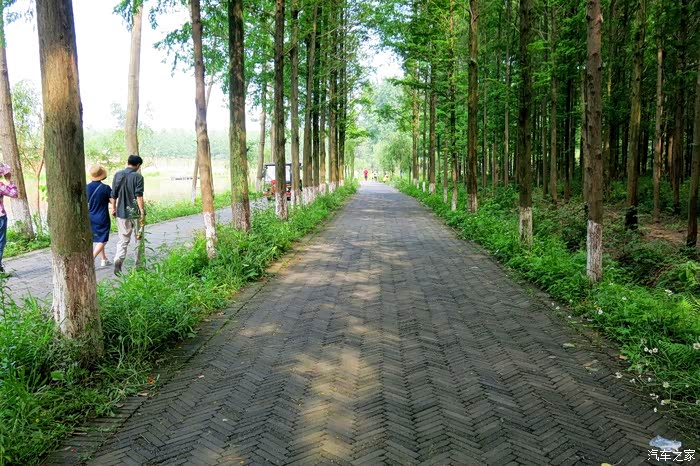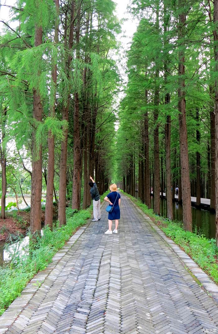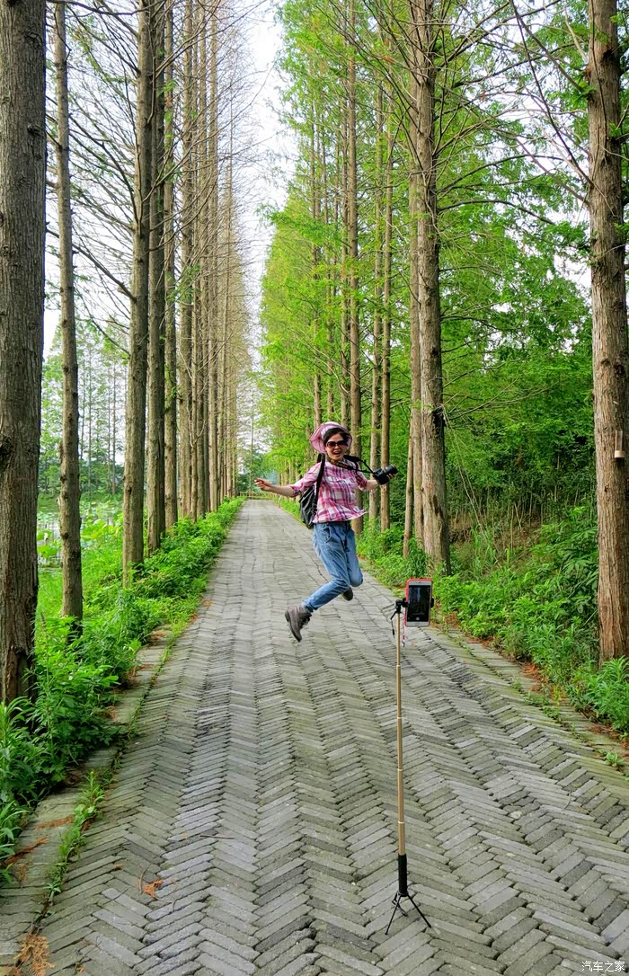 我们车停景区大门外林间,遮天蔽日的水杉丛林,仿佛天然氧吧。