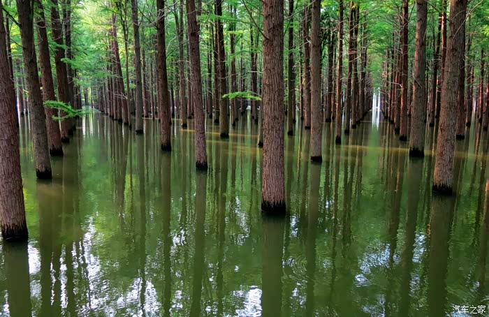 走进水乡,河道湖泊纵横交错,丛杉树林一望无边,视野开阔而空旷,空气清新而舒爽。