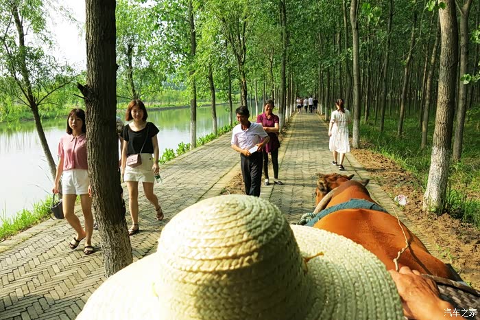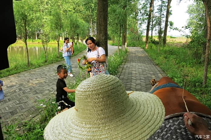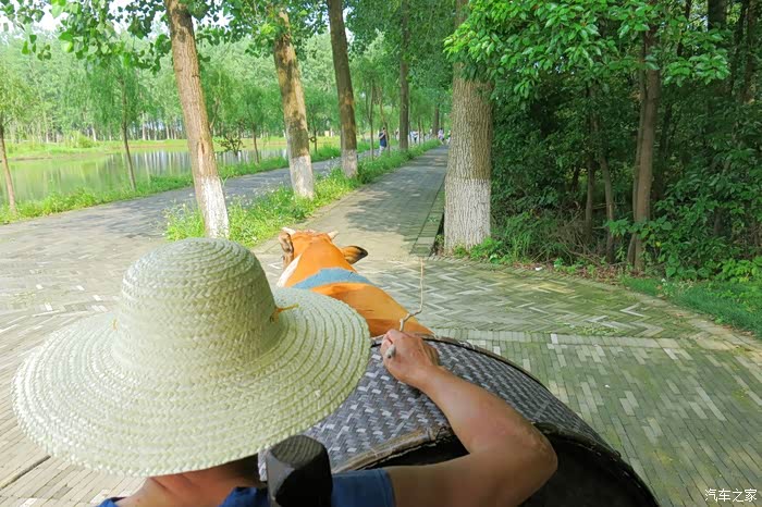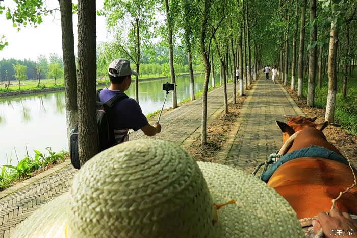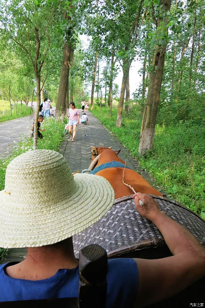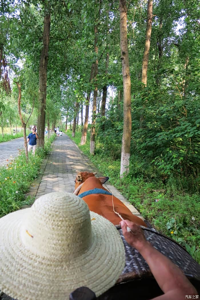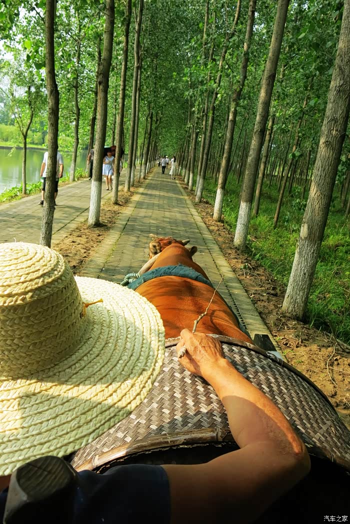 这里绿树成荫,亭亭如盖的林中绿道,牛车载我们缓缓而来,在蹄声中,飞扬着轻盈欢快的思绪,飘散着久违的童年记忆,家乡故园的气息,安宁美好。