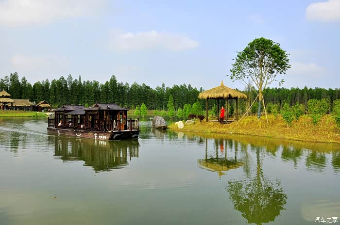 到达目的地,仙桃市的梦里水乡风景区。据资料介绍,这个梦里水乡景区是江汉平原特有的水乡、森林、田园等资源,建成一个四季色彩斑斓、花 香萦绕、老有所乐、童有所趣,突出以文为魂,以农为骨,以水为脉的特色,以乡愁、乡情、 乡思,乡趣为主题的梦里水乡。