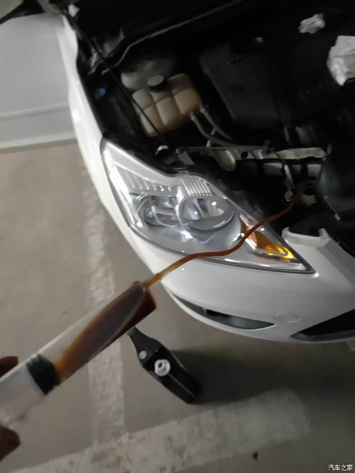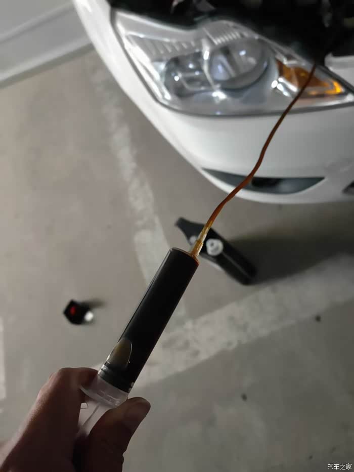 前段时间保养,京东养车的把4L全部倒进去了,我感觉他倒多了,已经超过机油刻度线的上线了,所以自己用针管抽出来了些。