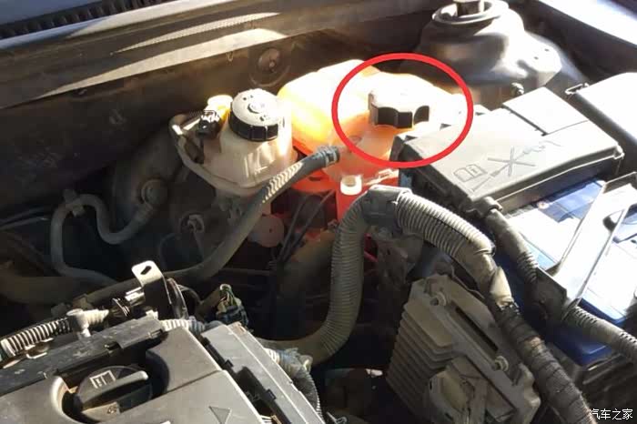 1、首先,放掉车内冷却液,这很简单,拧下冷却液壶盖;
