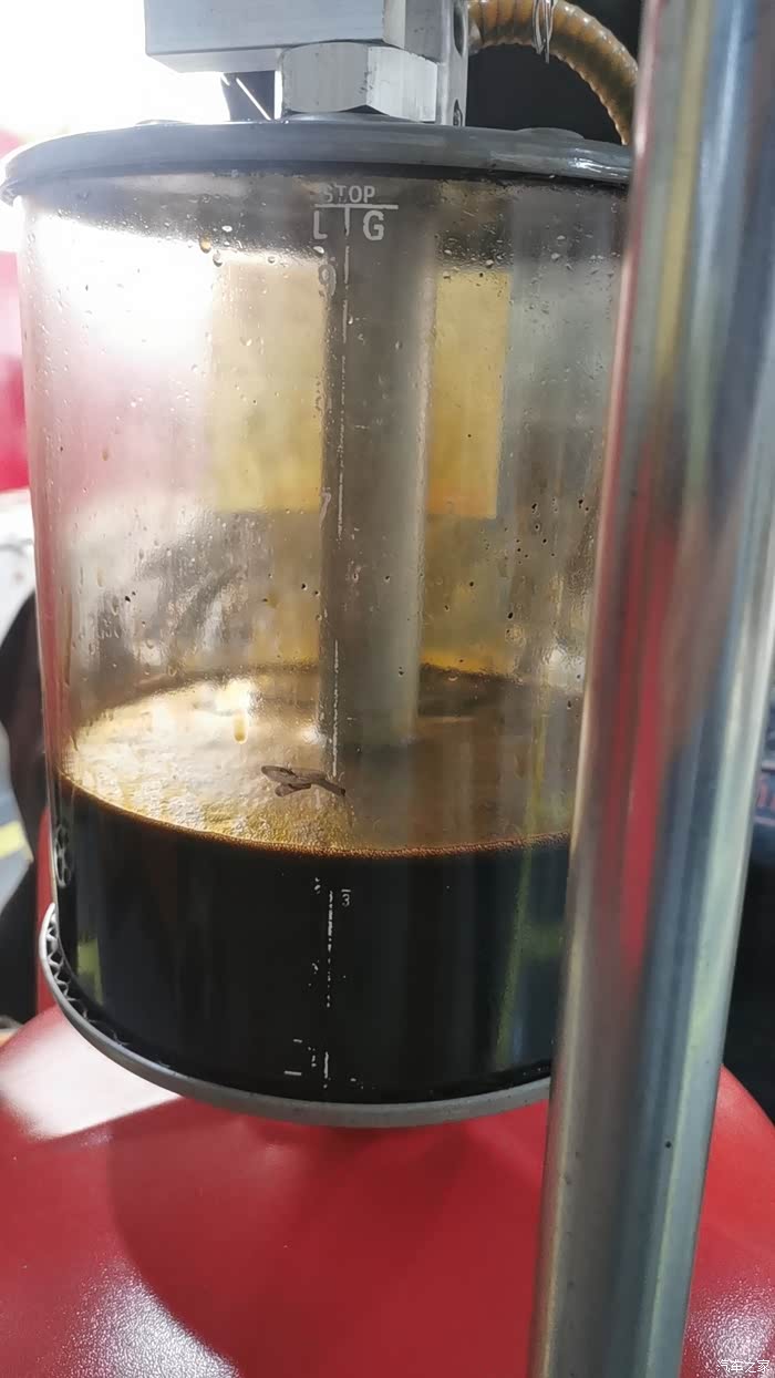 从残留的刻度判断,大概抽出了大概3.5升机油。这次机油行驶了不到5000公里,因为担心清理下来的积碳混合在机油中,会对润滑和机油滤芯造成。