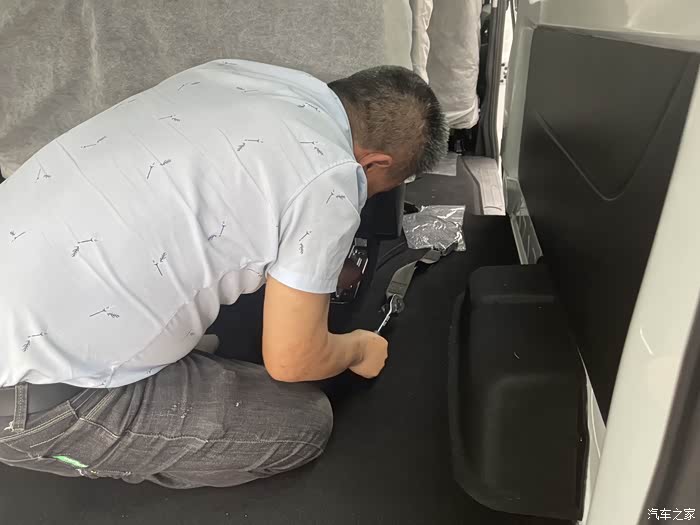 为了方便拉货,先把座椅螺丝松掉,到时需要用直接把座椅打起来往一边挂。比较省时间。