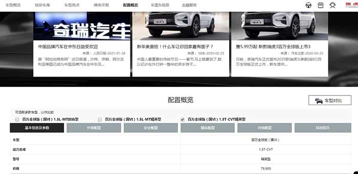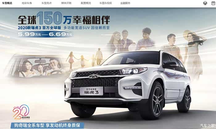 我仔细一看,晕倒,竟然没有 瑞虎3 系列, 于是去官网看了一下瑞虎3 的页面看了一下,还好,瑞虎3 还是包括在内的,看下图: