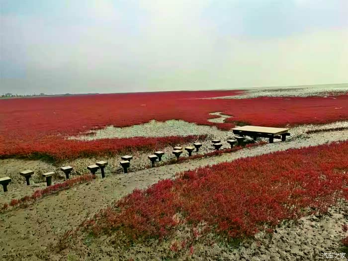 红海滩风景区位于辽宁省盘锦市大洼县赵圈河镇境内,距市区20公里。属于湿地生态旅游景区,它以全球保存得最完好、规模最大的湿地资源为背景,举世罕见的红海滩景区是以其特有的大自然孕育的一道奇观——红海滩而闻名海内外。织就红海滩的是一棵棵纤柔的碱蓬草,她每年4月长出地面,初为嫩红,渐次转深,9月由红变紫。它不要人撒种,无需耕耘,一簇簇,一蓬蓬,在盐碱卤渍里,年复一年地生生死死,死死生生;于光阴荏苒中,酿造出一片片火红的生命色泽。这里,也是世界珍稀鸟类黑嘴鸥的主要繁殖地。