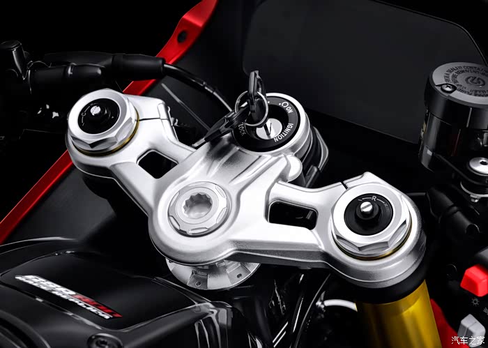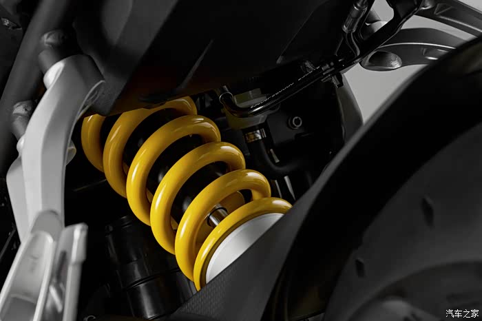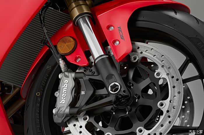 制动系统方面,前置双碟碟刹+Brembo布雷博径向对置四活塞卡钳,后制动系统则使用了单碟+布雷博双活塞对向卡钳的配套。