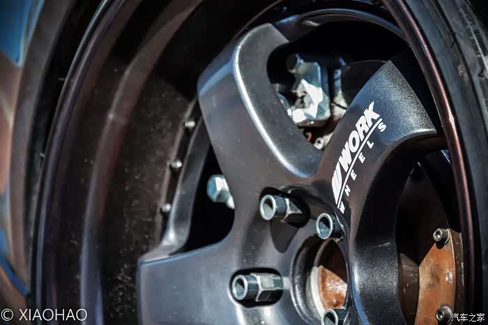 持续关注我的朋友应该知道我最近中毒WORK轮毂,一切的一切都是从这台车上的WORK开始,五幅的造型非常粗壮,而古铜色的配色使得肌肉感更上一层。而白色的WORK贴则是点睛之处。