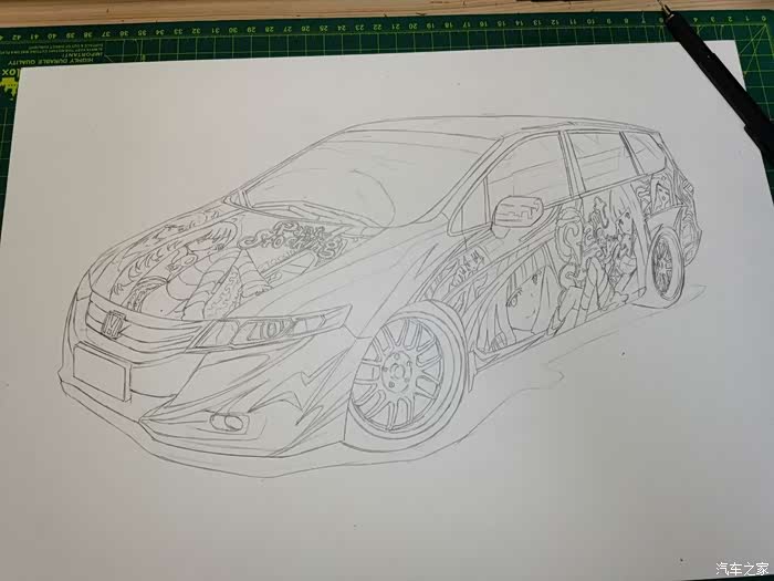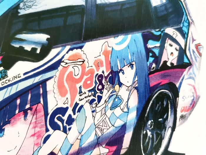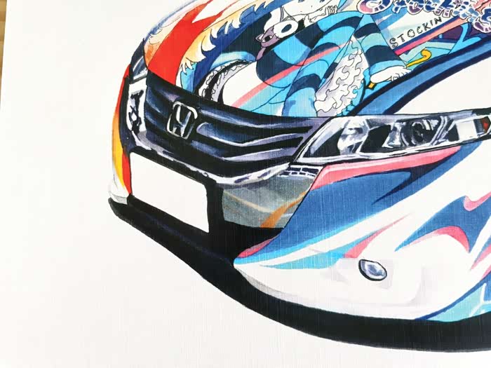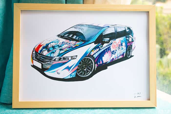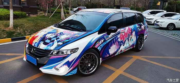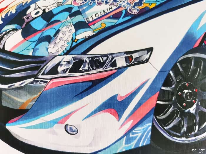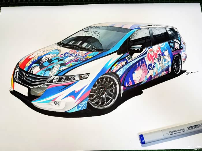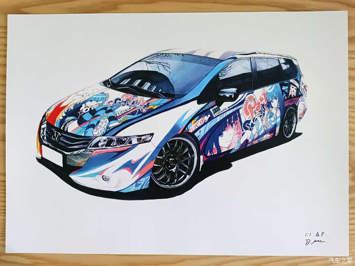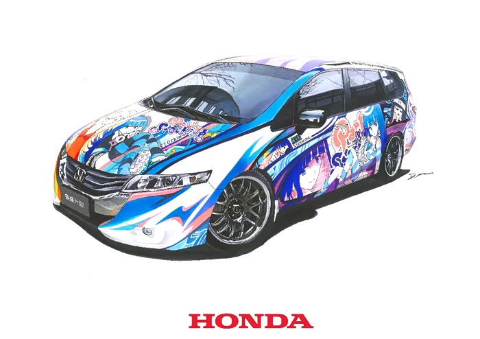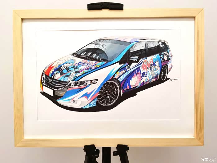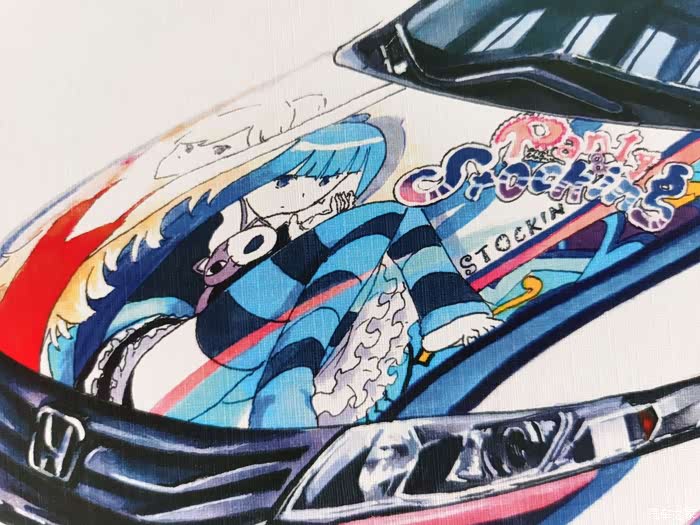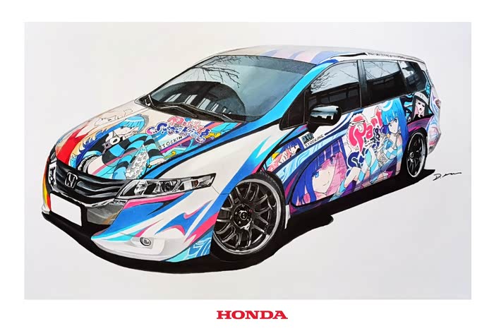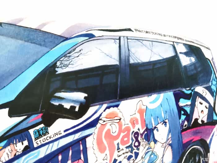 该画为应车主要求绘制,耗时约10小时,素车为本田奥德赛,车身痛的图案为吊带袜天使的Anarchy Panty和Anarchy Stocking。