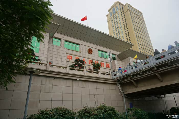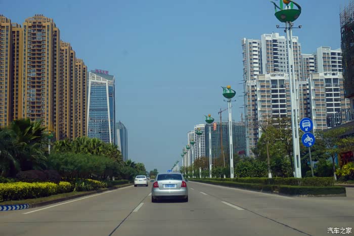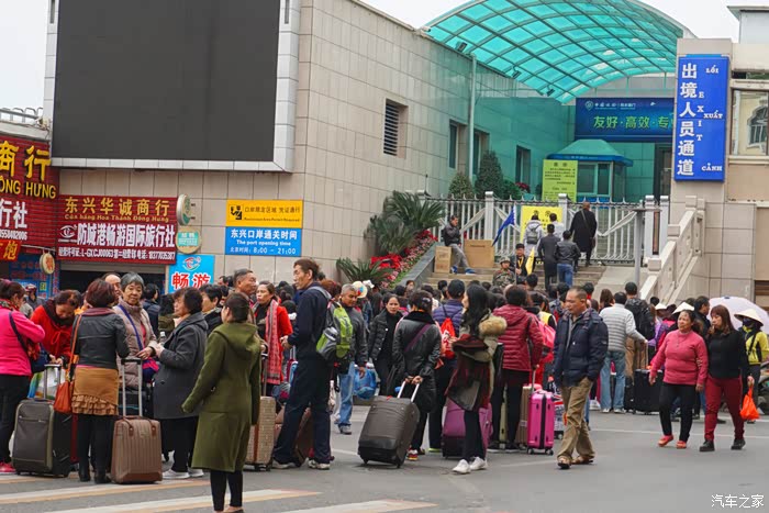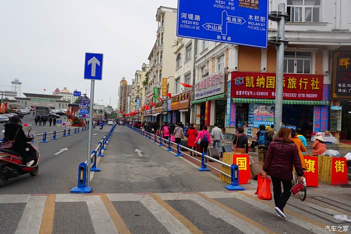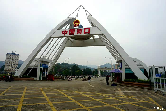 离开口岸,行驶在河口的大街上。