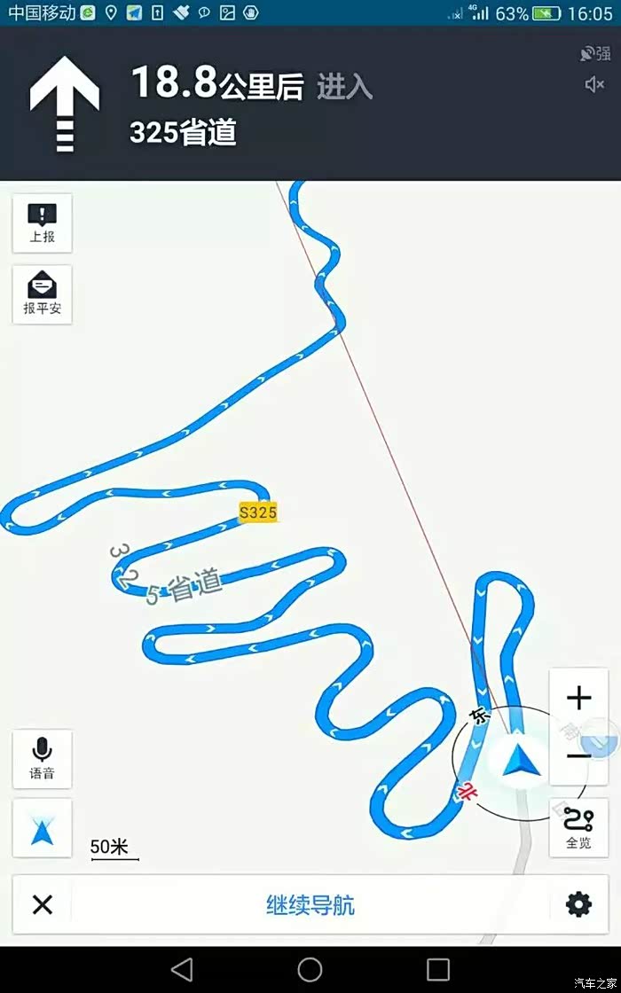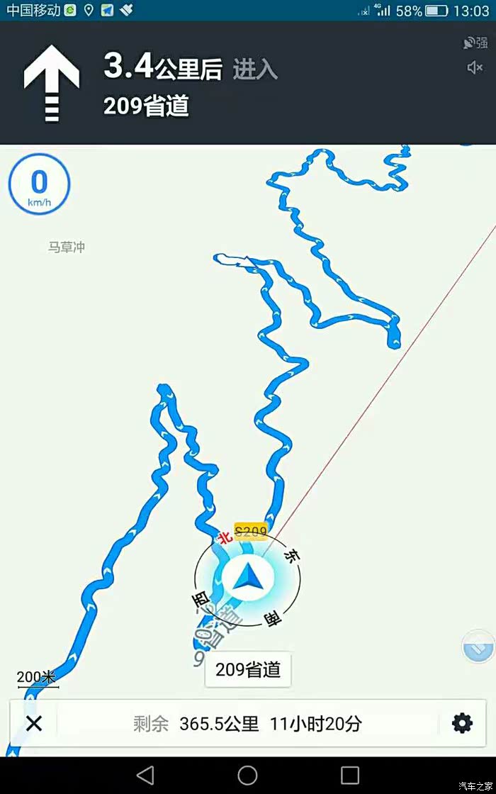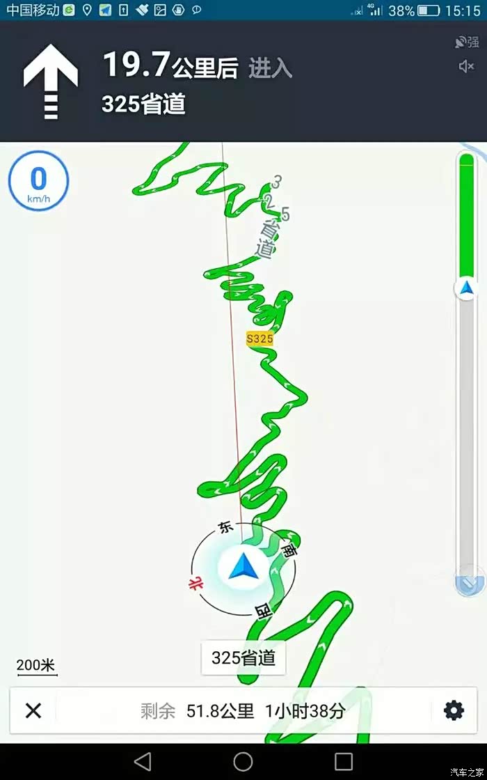 导航线路的截屏图。看这个平面图,非有经验的司机,是体会不到山路的上下坡度和弯曲程度的。