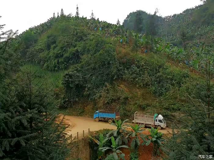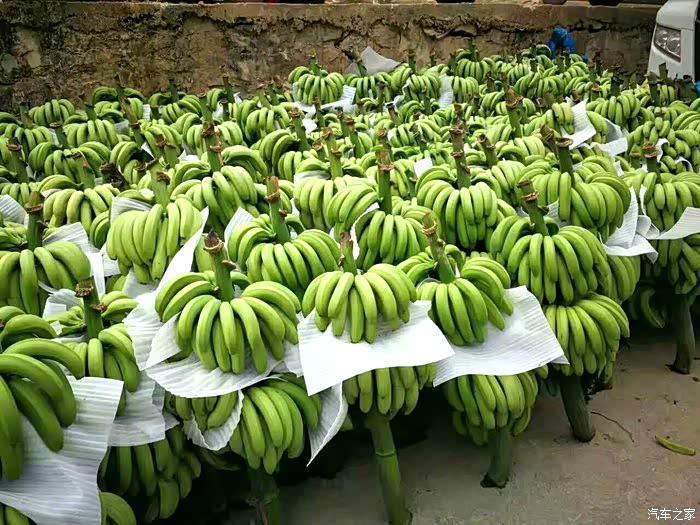 在山区好长一段时间行驶在香蕉园里,漫山遍野都是香蕉树。路旁到处都堆放着采摘的香蕉