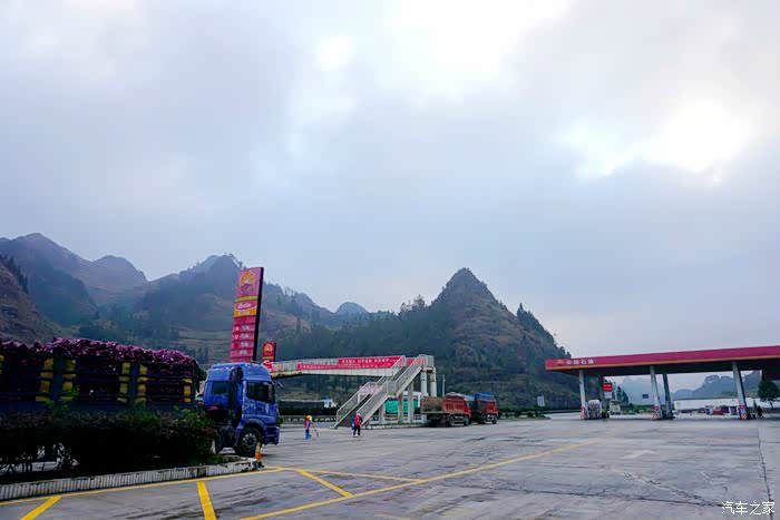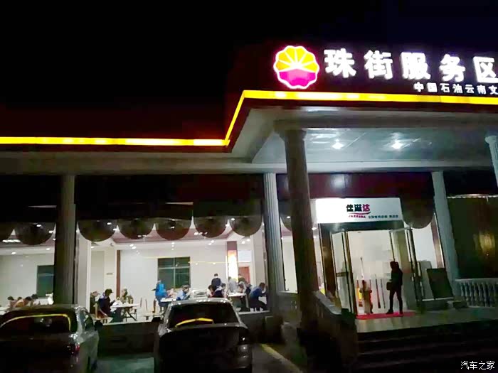 由于大部分是山路,路窄弯多,天黑了后,又跑了一段高速公路。决定住到了服务区。我们都有