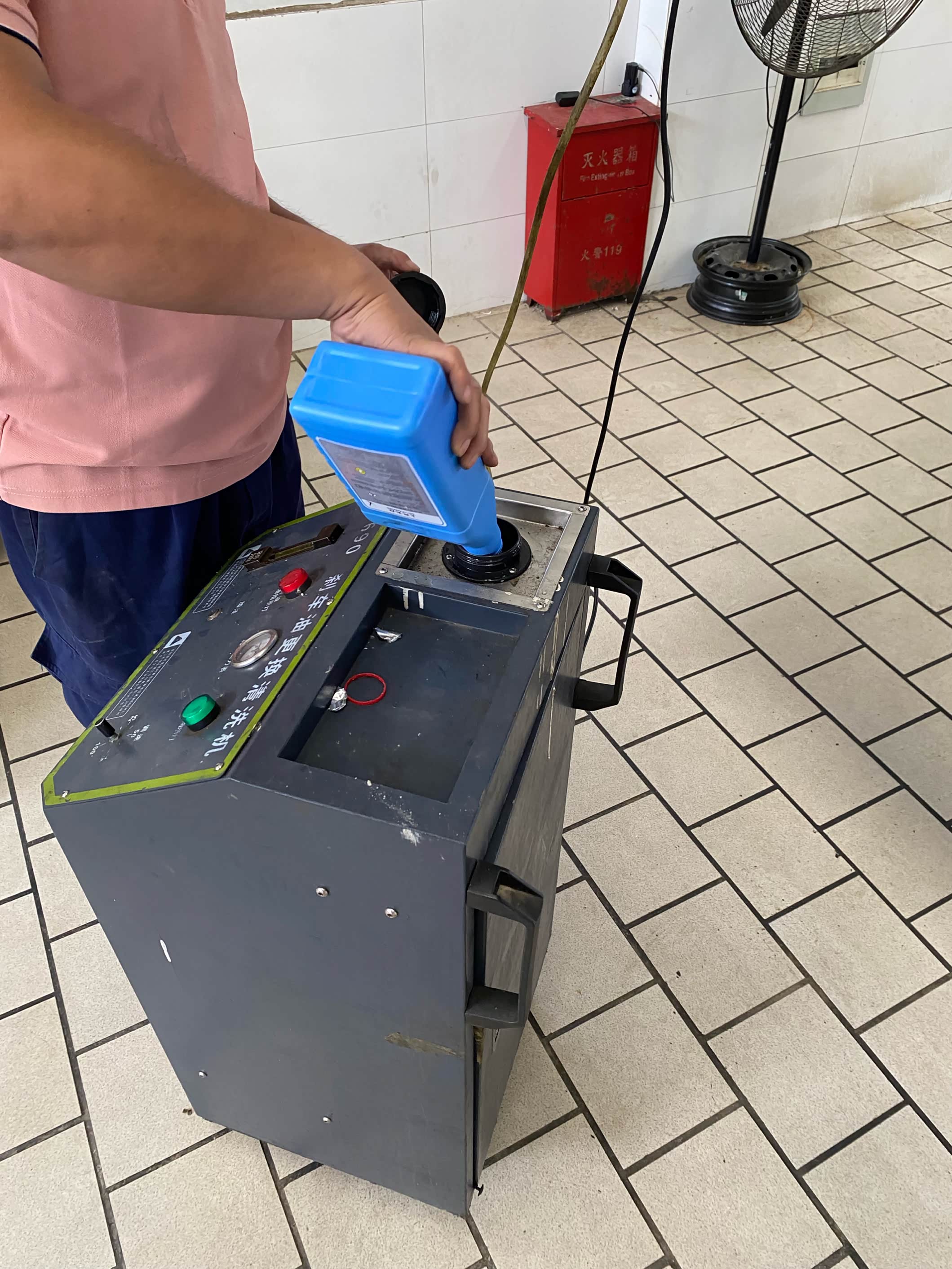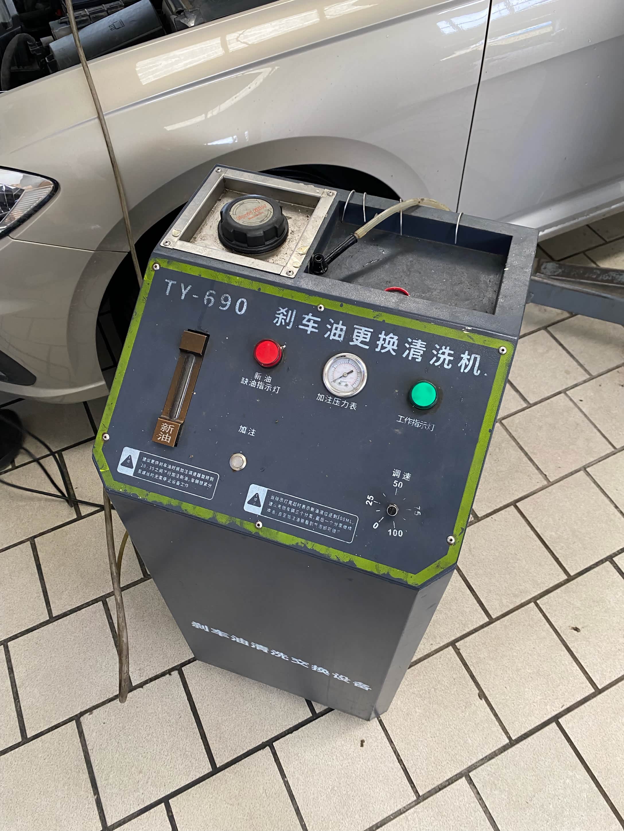 这个就是更换刹车油的设备了通过压力把制动液把送入我们的车辆制动油路。