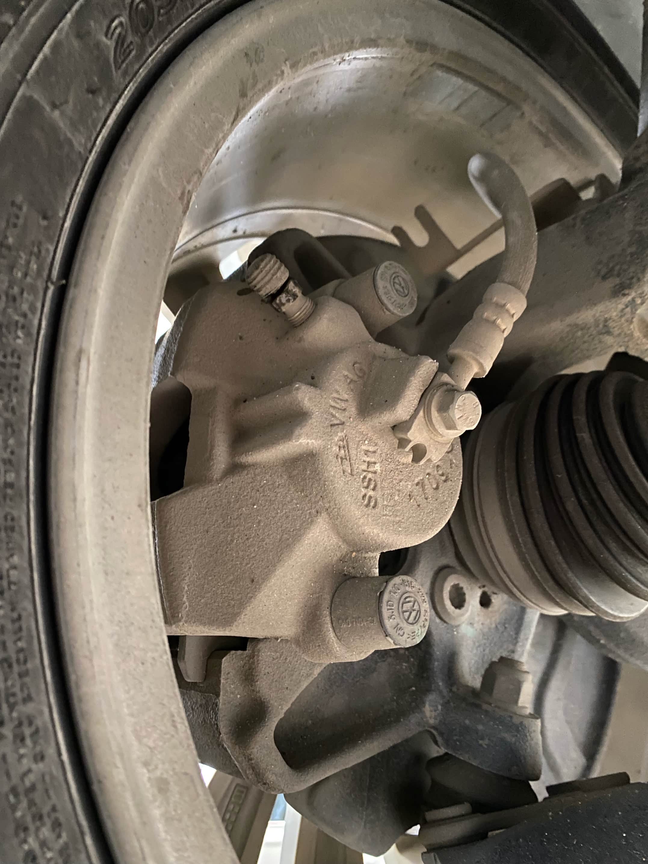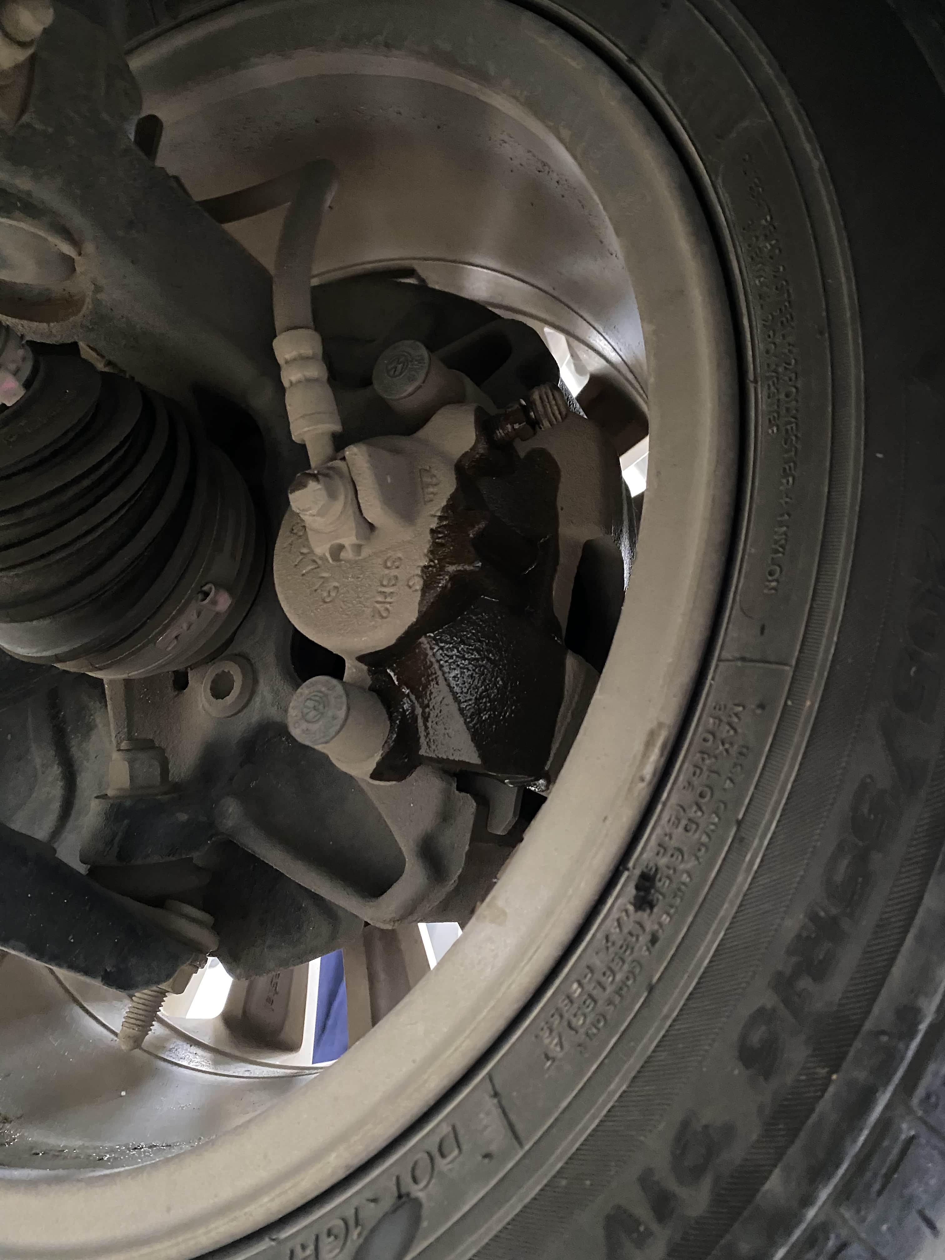这个位置应该是拧螺丝的时候慢了一点,导致了刹车油有流出来了一点不过师傅后面用毛巾擦了一下。