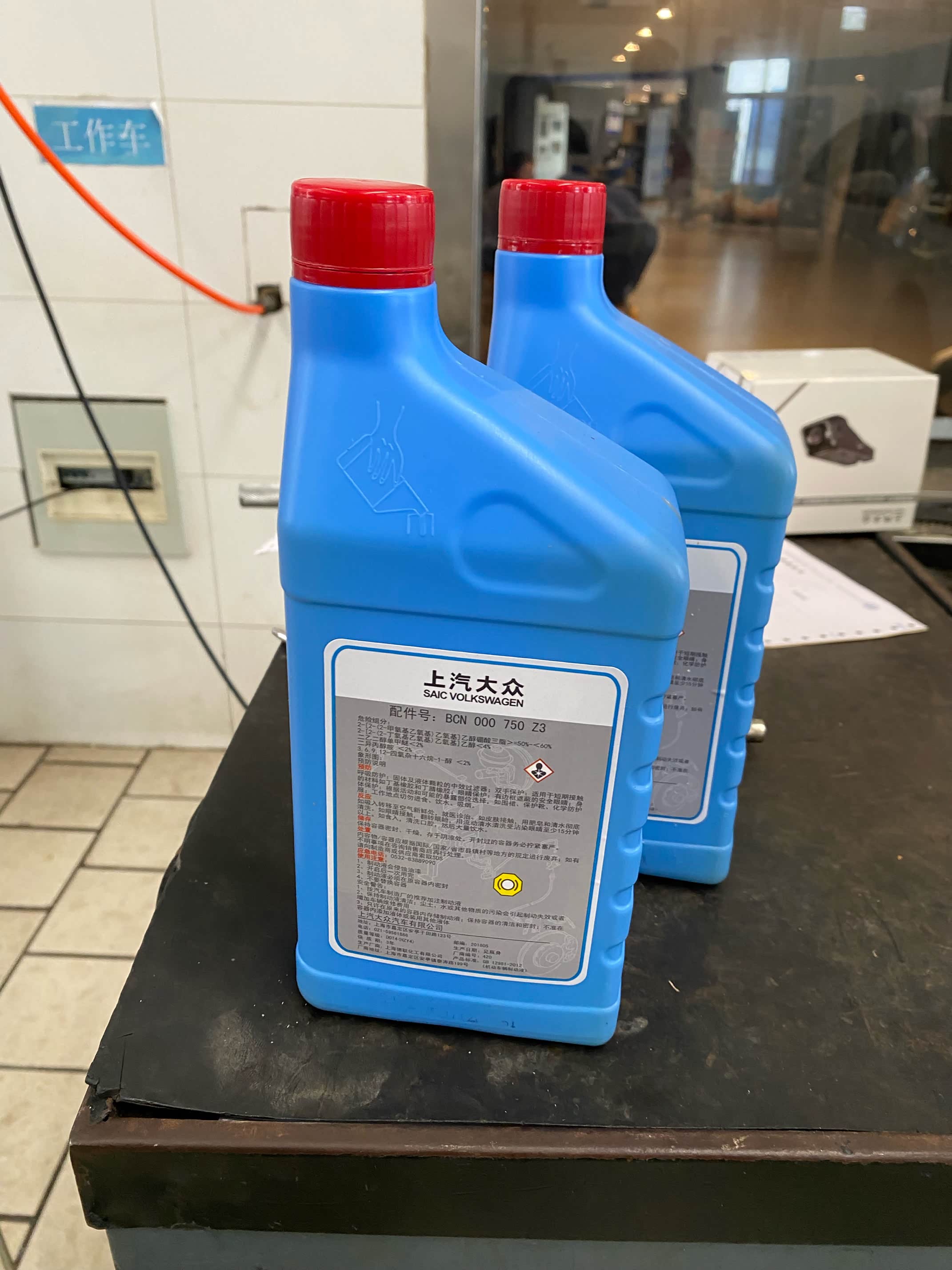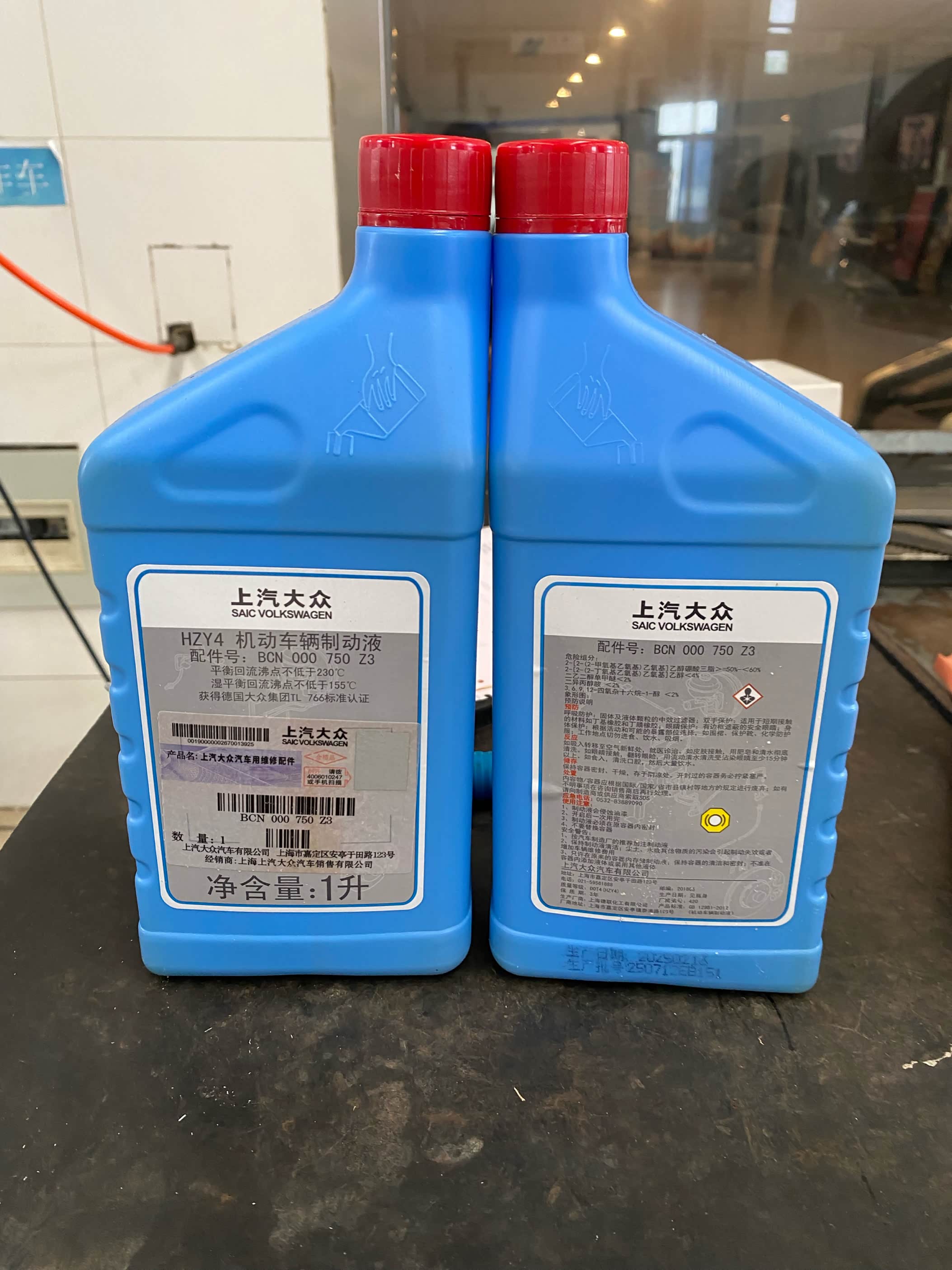 上个月在店里面做了一个车辆的安全检测,师傅重点检查了一下发动机舱的部件。测试了刹车油的含水量。已经达到了2.5。已经达到了需要更换的标准了。防止后期含水量加大。在高速剧烈行驶的时候,造成刹车不灵的现象发生,那就麻烦了。毕竟安全第一,而且更换刹车油的话,价格也不是很高。也就是两三百块钱。所以今天就到店里买来更换。更换刹车油的话有两种方式,一种是重力更换,一种是压力机更换。重力更换的话只需要一瓶就好了,而店里的话一般都是使用压力机。所以说,需要两瓶。一瓶的话用来清洗,一瓶用来更换。本来还给我推荐了一个清洗刹车油路的,但是我感觉没必要。直接上两瓶制动液就可以了。