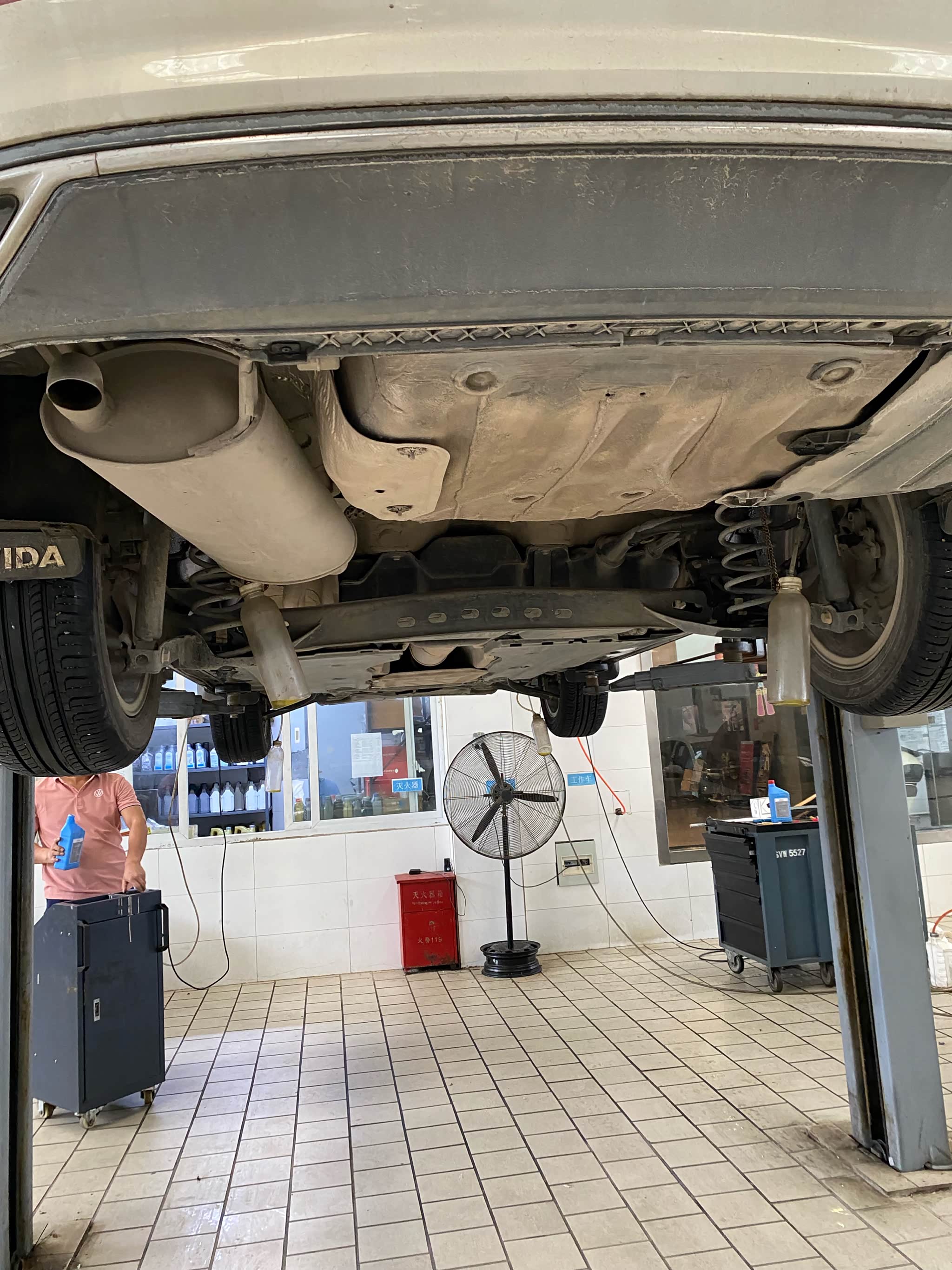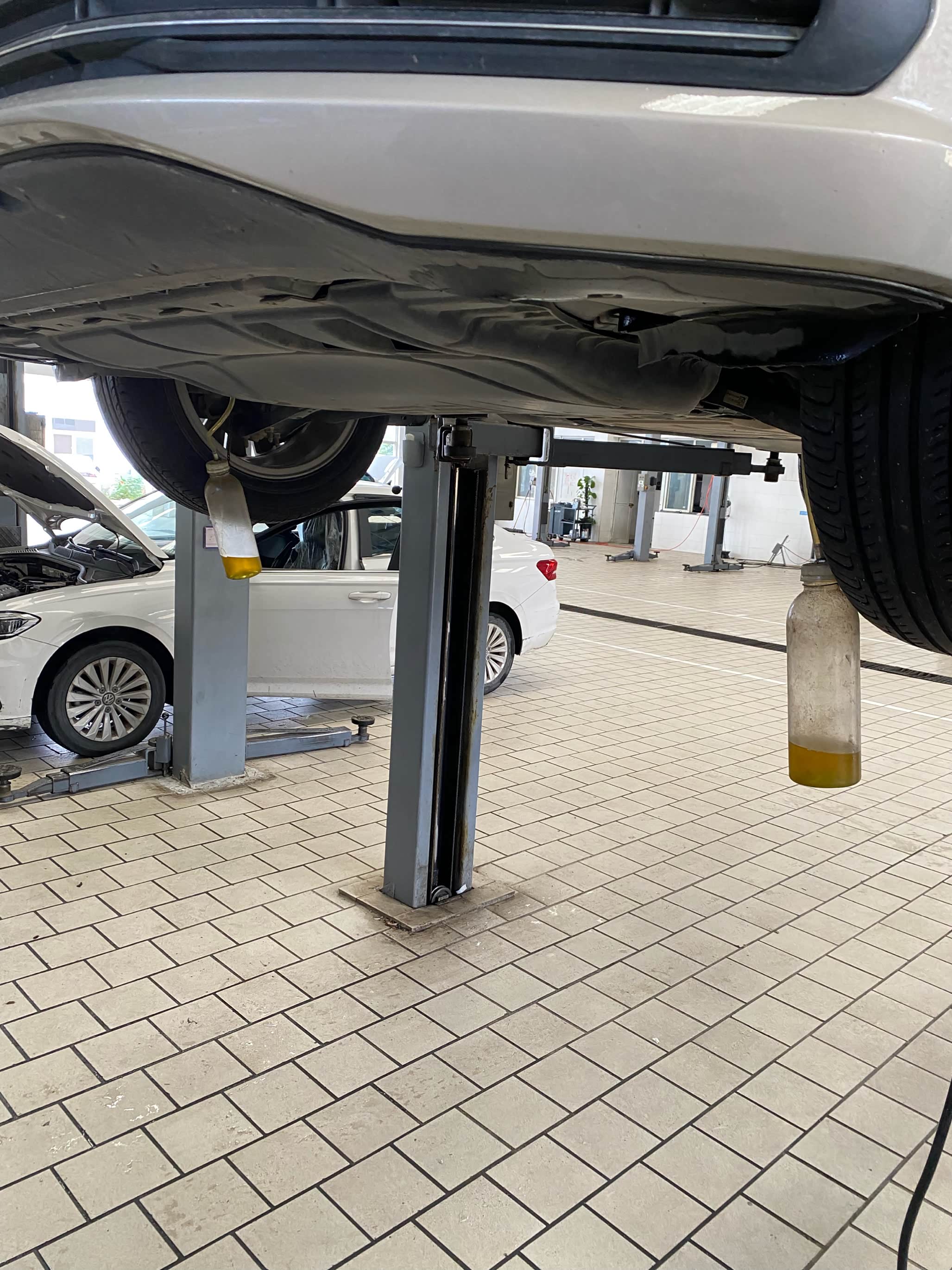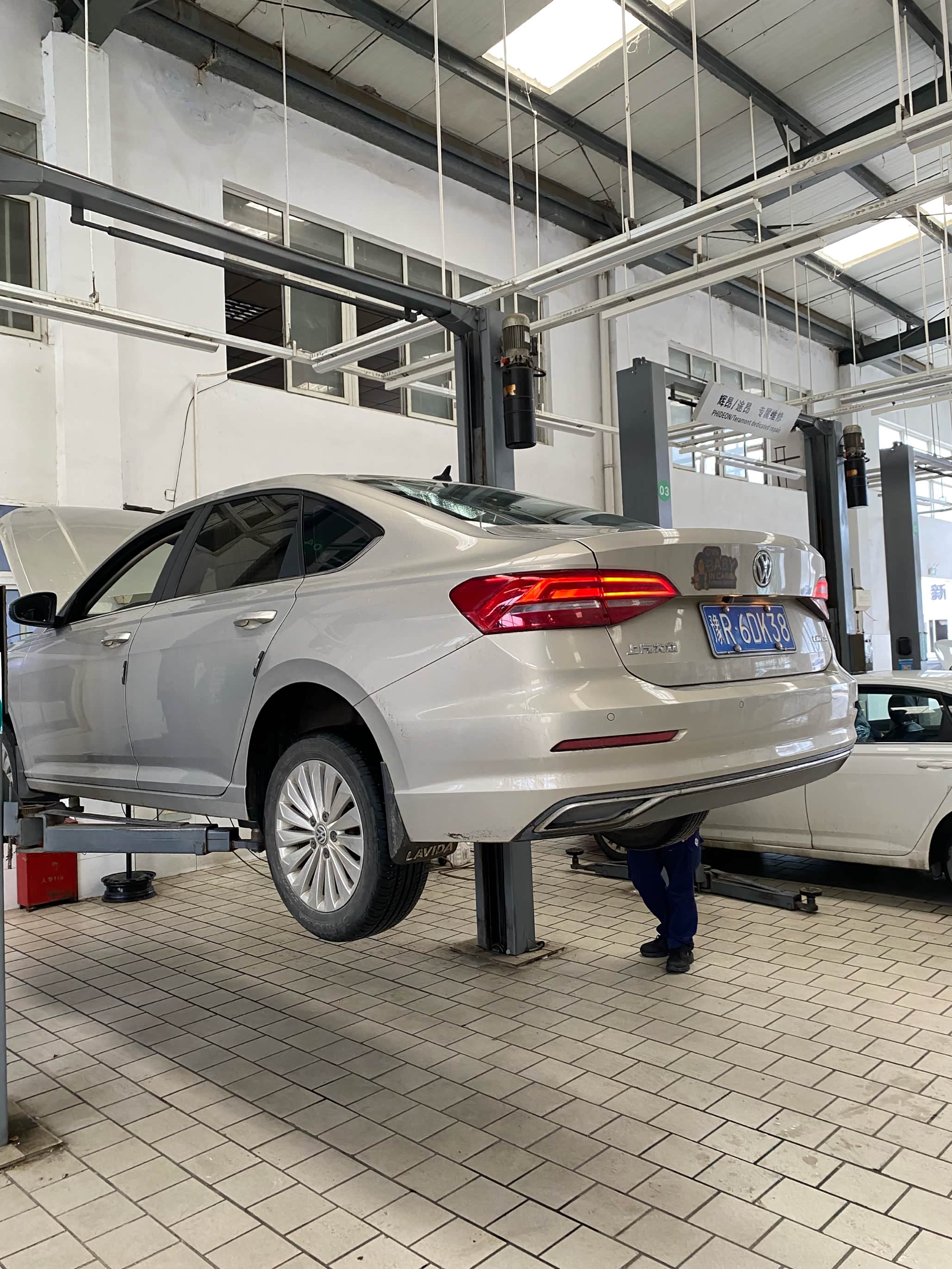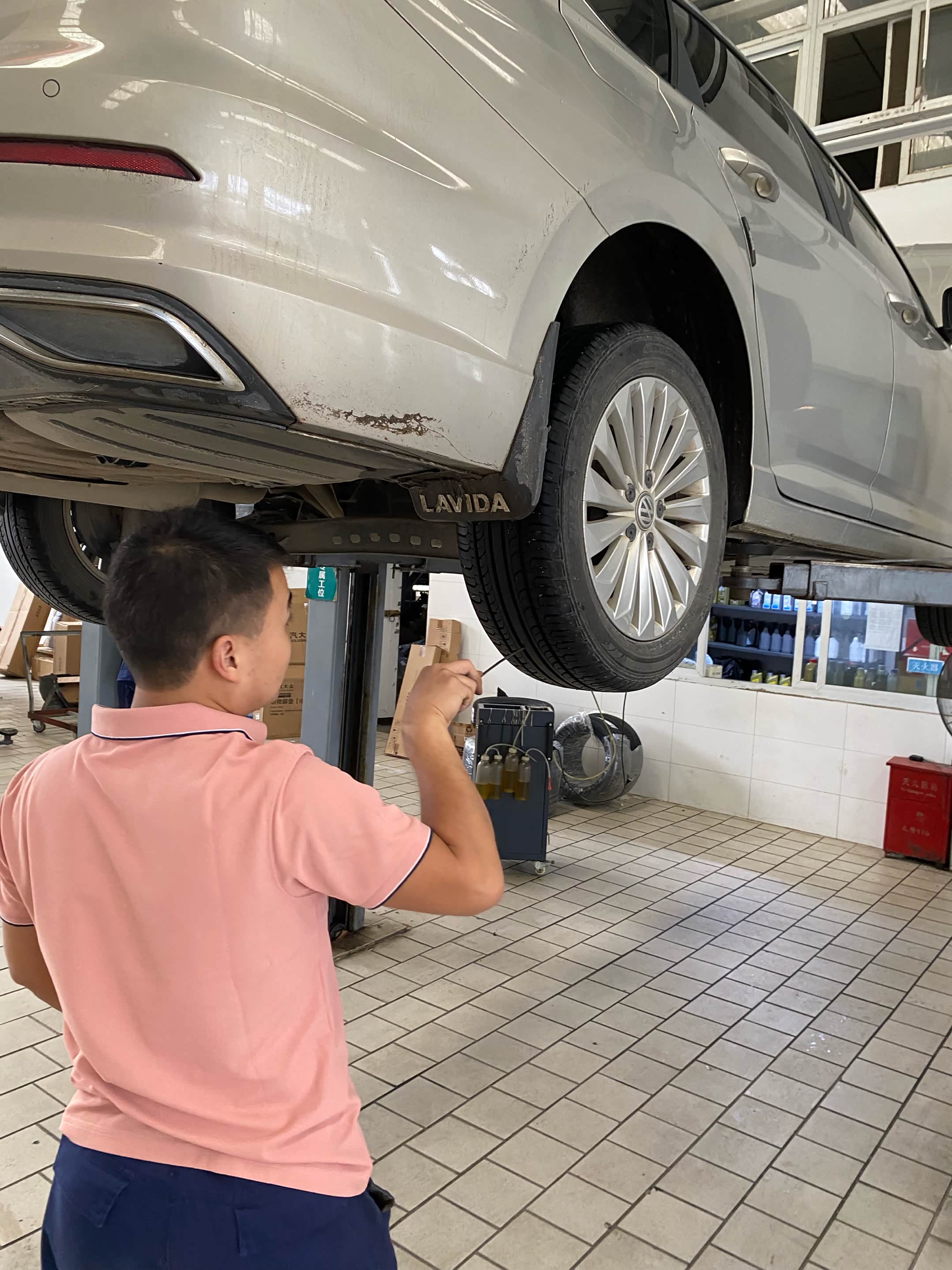 到店之后先找售后开好服务工单,然后就把车子开到公寓里面等待了。车子还是挺多的,等了大概半个小时才轮到我,刚好是中午的时间,先去吃了一个饭,店里的售后师傅们也没有休息,吃完饭就接着干活了。