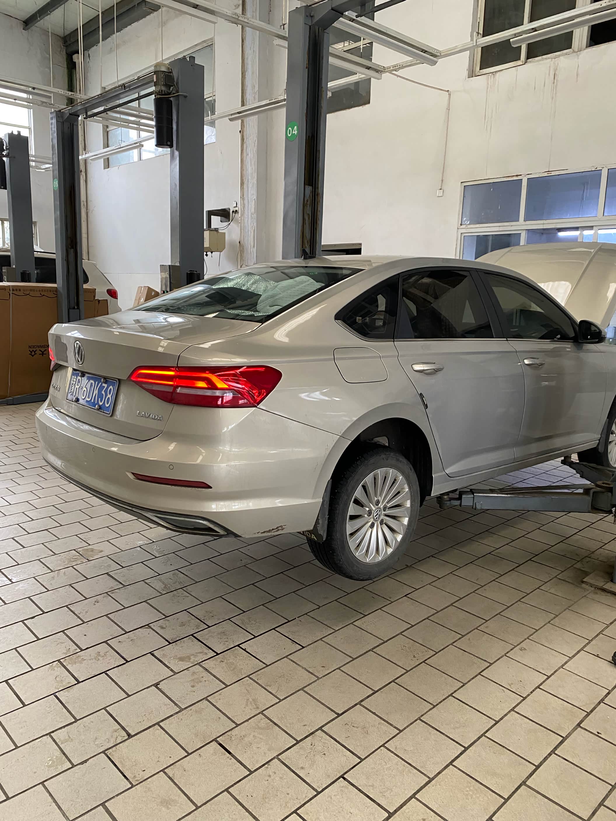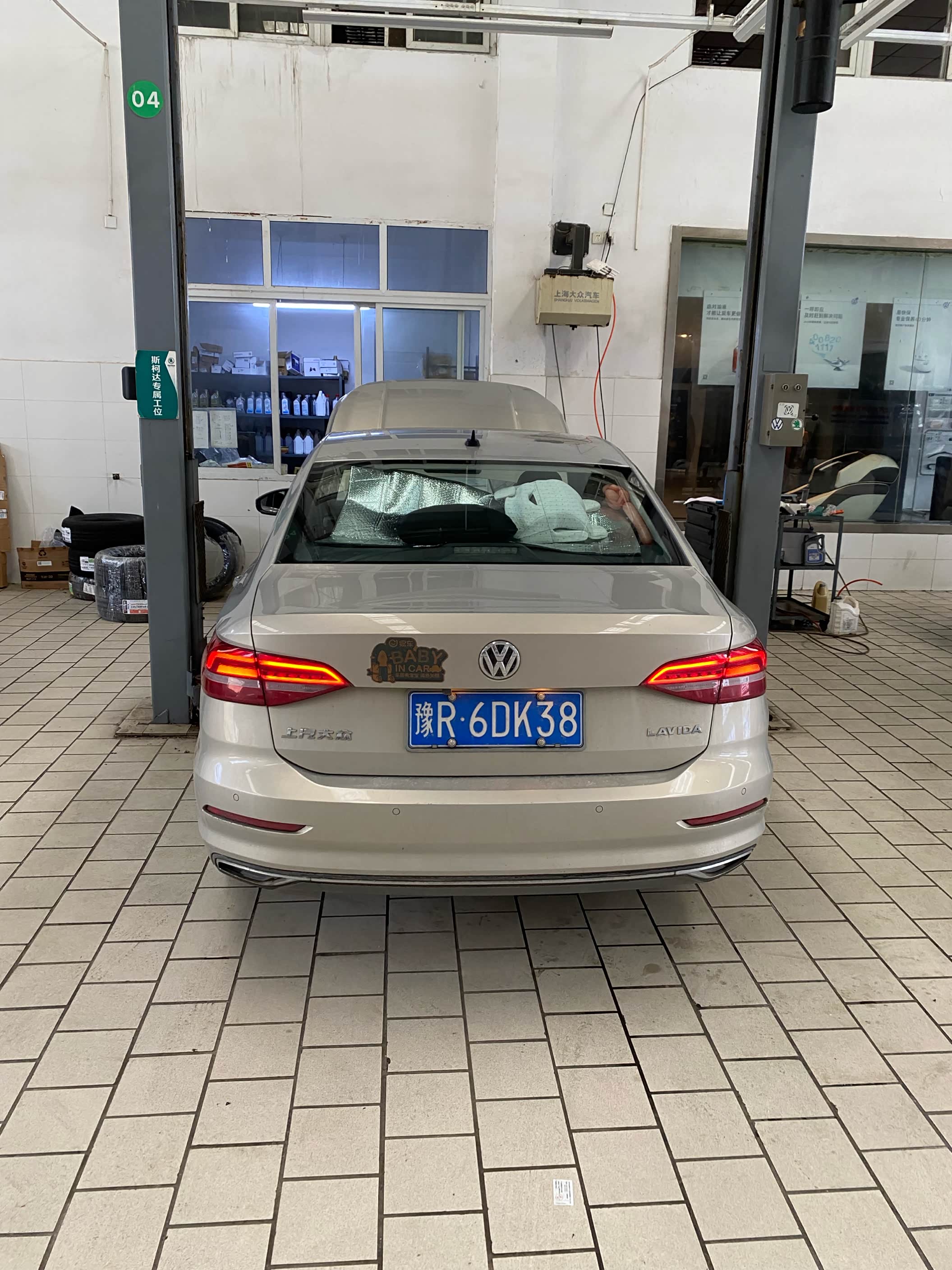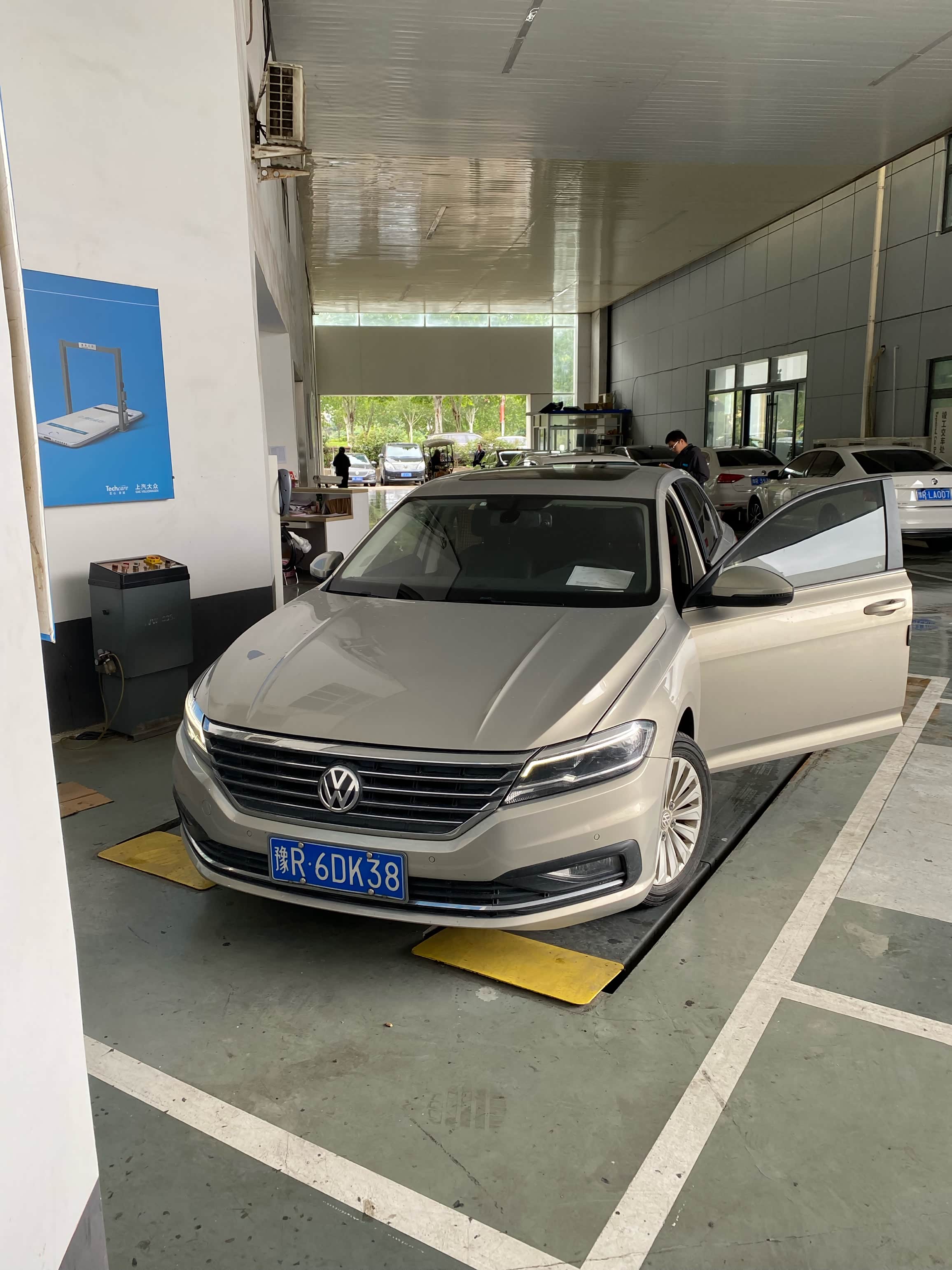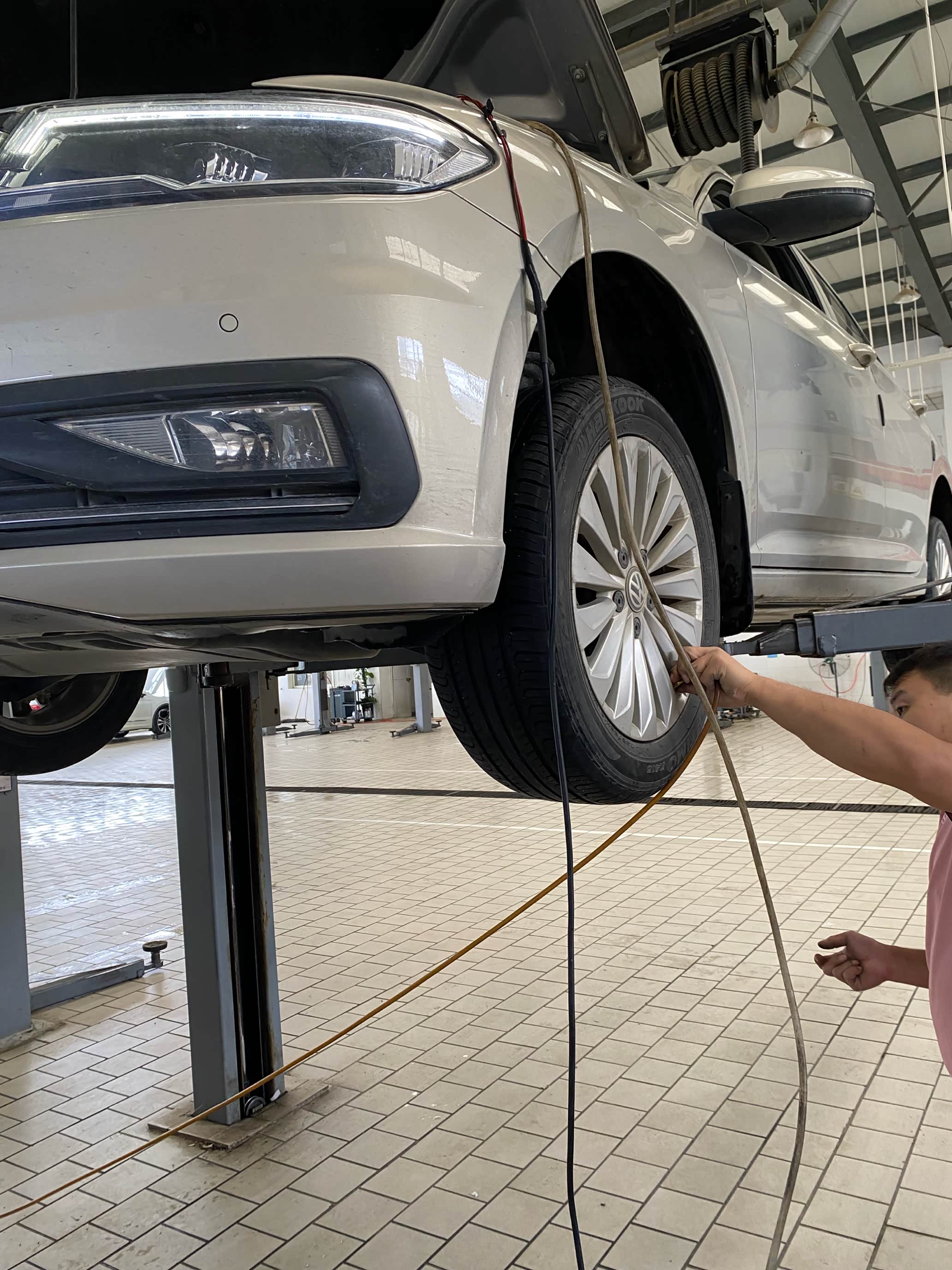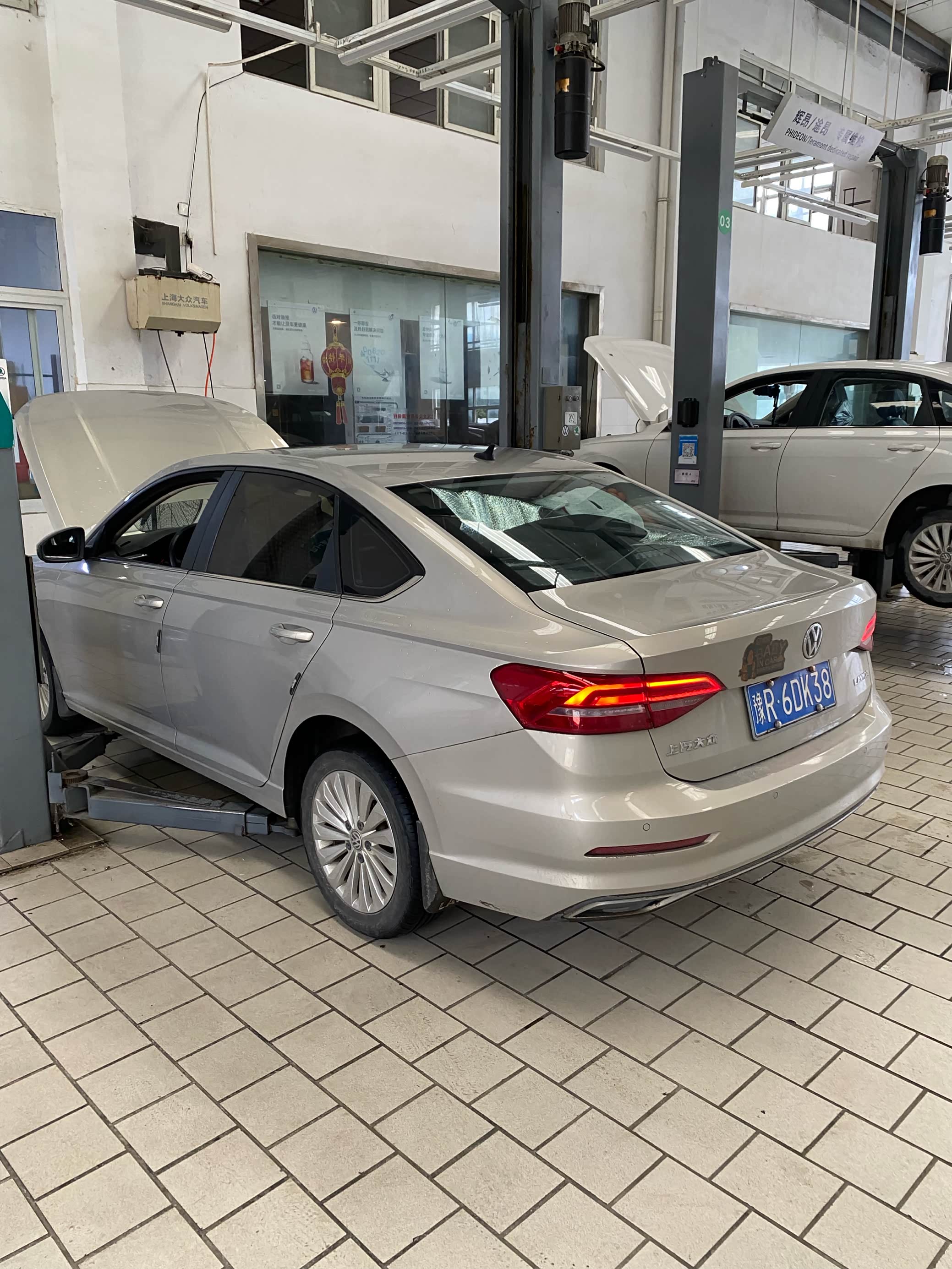 到店之后先找售后开好服务工单,然后就把车子开到公寓里面等待了。车子还是挺多的,等了大概半个小时才轮到我,刚好是中午的时间,先去吃了一个饭,店里的售后师傅们也没有休息,吃完饭就接着干活了。