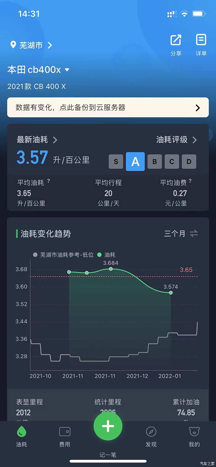 刚提车的时候还不熟悉车子,比较温柔。等骑熟练了,就比较暴力了。 怎么来劲怎么骑,油耗就上去了。