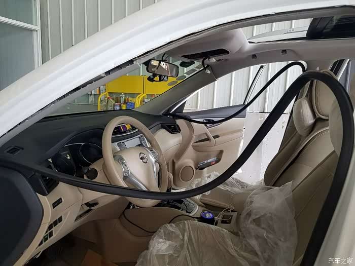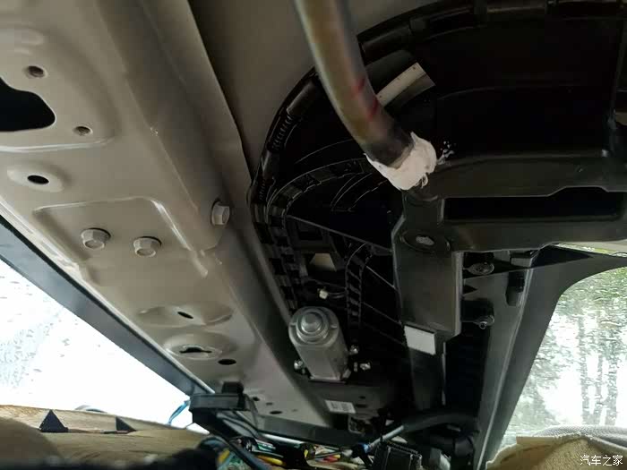当拆开顶棚后,哪怕你是只拆A柱那种,排水管都会下垂,与天窗出水口下边的接触位置,就被压紧了,但还原后,顶棚向上抬,就把管子顶了上去,这样与出水口下边的位置,就开了个小缝,水就可以渗出来了。