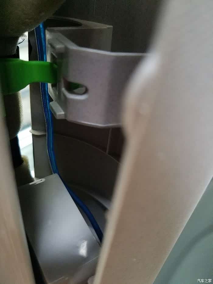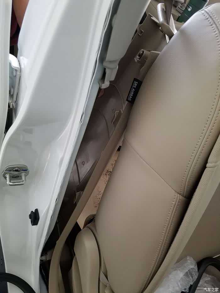 1、B柱安全带调整的拉手掉出来了,研究后发现很简单,手伸进去,有个顶柱一样的东西 ,顶出来再卡上就是了。
