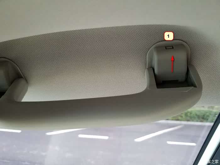 注意一下拉手的拆法,1的位置是个卡子,拿上面拆行李架盖子的90度改刀拉开,按箭头的方面拉出这个盖子,实际上这个盖子,有点像一个栓。