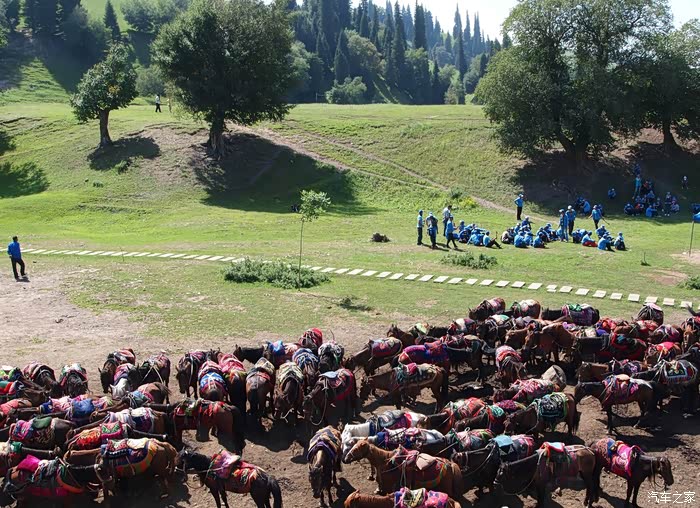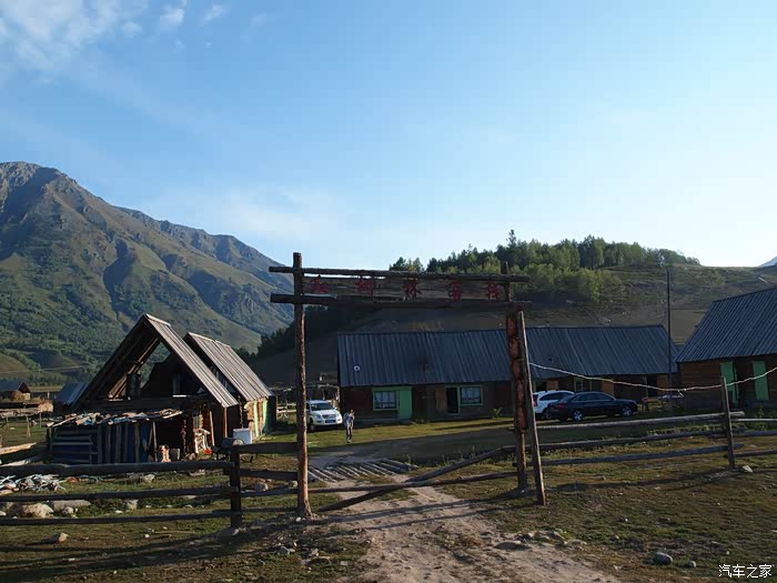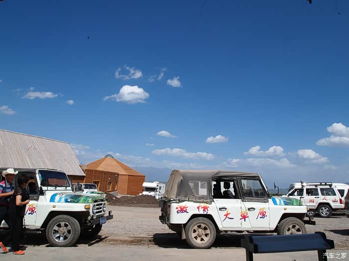 这次我们是从赛里木湖景区大门进的。赛里木湖景区的对面停了不少旅游车,我第一次去那里是不需要收费的,后来当地人搞创收了。