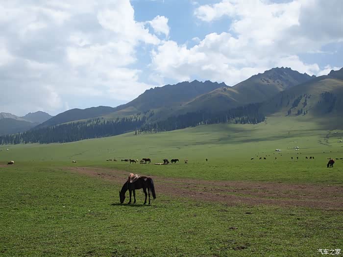 这是赛里木湖景区的外面,很多旅行社会把游客带这里来看赛里木湖。看看也蛮漂亮,只是旅行社省钱了。我们路过下来看看。