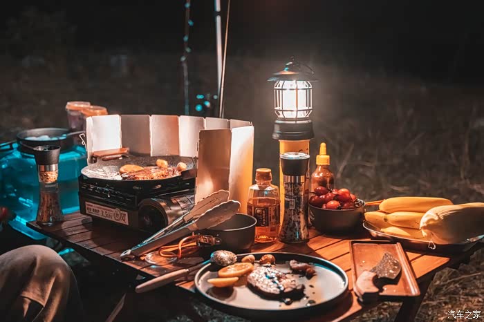 刚摆好露营装备,小倩就开始煎牛排了