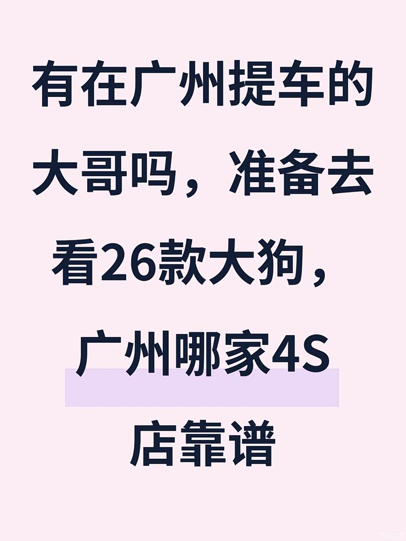 有在广州提车的大哥吗,准备去看26款大狗,广州哪家4S店靠谱