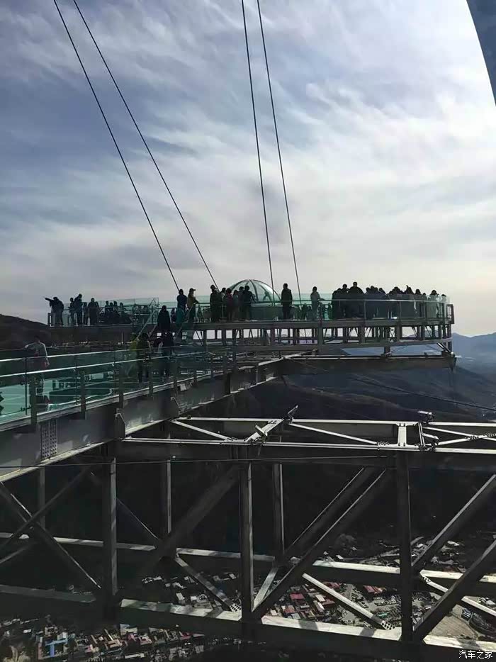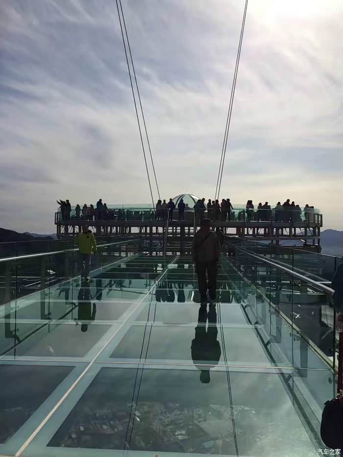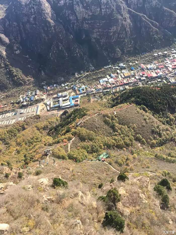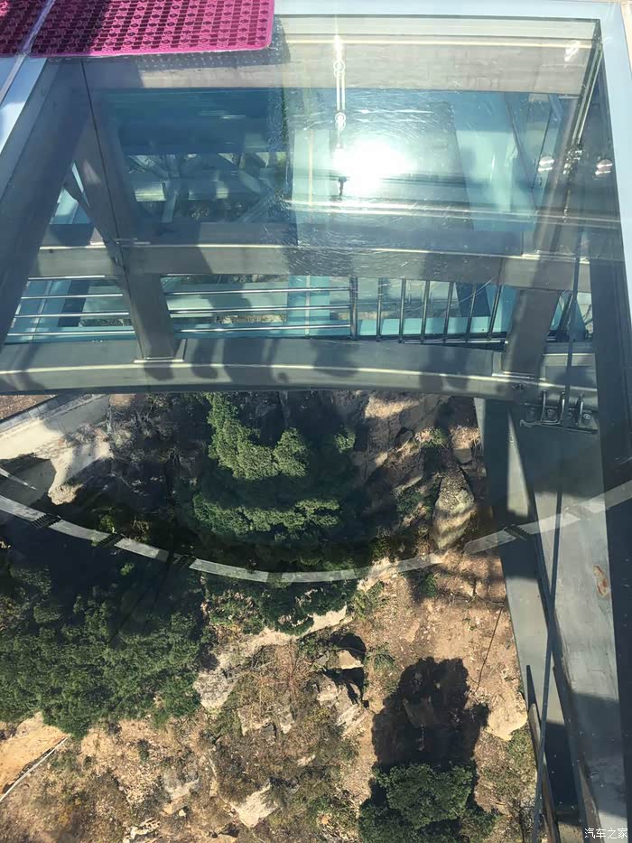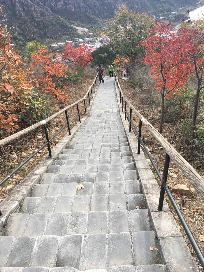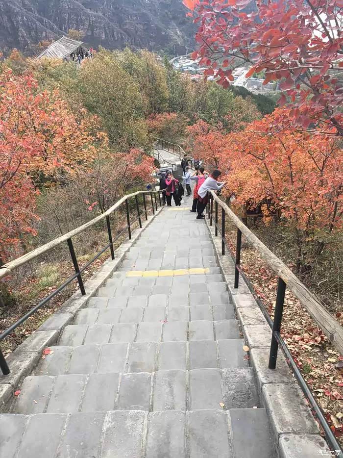 上午10点到达景区,门票78元,进去大门走50米就会有索道,单程50元上到山腰(据介绍不能再往上修,山上风大会有风险),下索道再爬40分钟终于到达玻璃栈道平台,一路上楼梯的两边都是红黄的树叶,甚为好看。栈道每人10元。走上透明平台,脚下就是石林峡峭拔挺秀的石林峰群,秋色中的一草一木都尽收眼底,不过从来不恐高的我也有一些腿软,能不能战胜自己,只有试了才知道~