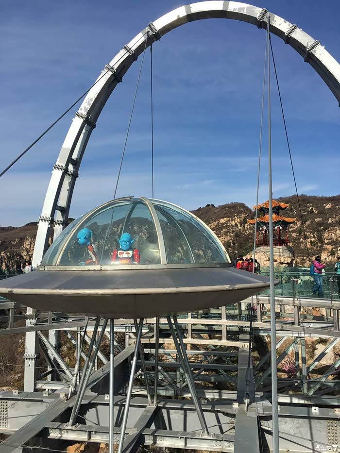 十月金秋,正是游山玩水的好季节,恰逢休年假,带着家人驾驶着我的皇冠上路了,驱车一个半小时穿过层层迷雾到达平谷石林峡,只为征服那个很多人望而却步的UFO玻璃观景台!这个号称中国新十大奇迹工程的石林峡飞碟玻璃观景台,坐落在北京市区东南部70公里的平谷境内,是黄松峪地质公园的核心景区,全长6公里,面积12平方公里,大小景观50多处;石林峡中的石、峡、水、峰、林五大特点构成了独特的景观又各具千秋。赏北国石林、观九天飞瀑、游峡谷险峰、寻石林三绝是石林峡四大浏览特色。这里的石林高峻陡峭、片片根根直立,巨石、奇石遍布谷中,整个峡谷林木郁郁葱葱,奇松怪柏苍翠挺拔,幽长的峡谷清寂秀丽,九瀑十八潭点缀其中,如一幅惟妙惟肖的天然画卷,颇具北方的壮美气势,又显江南的秀丽多姿。