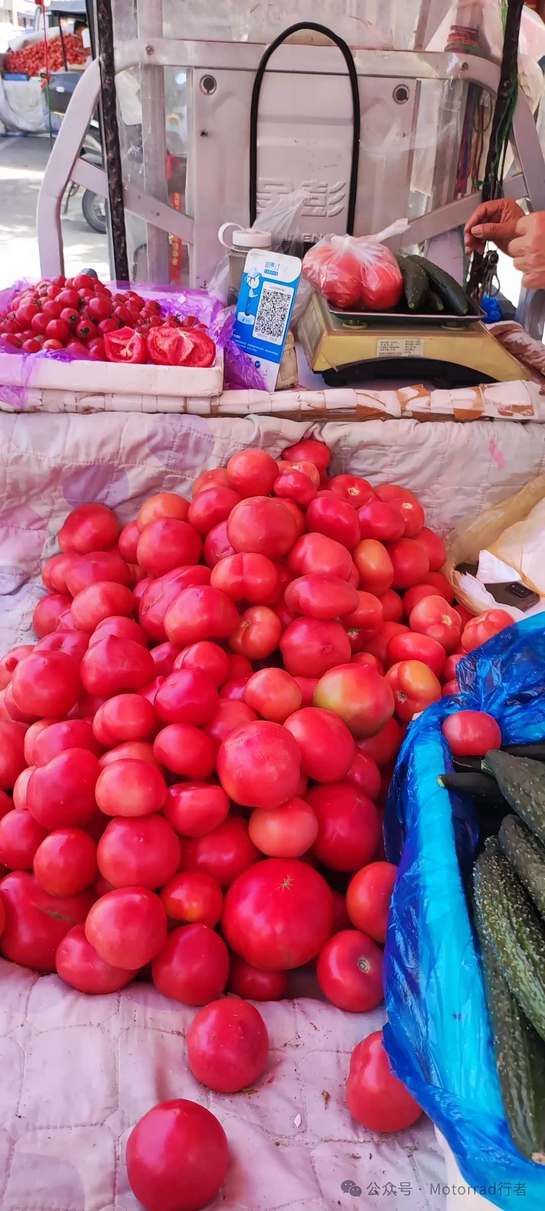 路边摊上的番茄黄瓜,口感超级棒