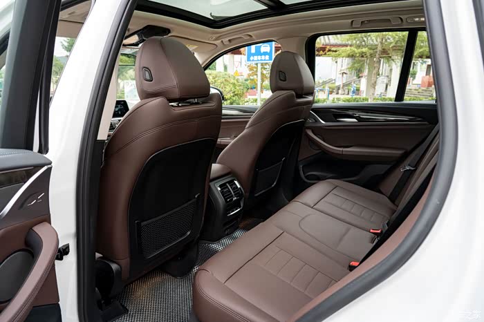 购车经历:6月份去4S店看到展车在拉开车门的那一瞬间立马给震住了,米白色的顶棚,摩卡棕的座椅内饰、中控台和门边上镶嵌着棕灰色白杨木纹理高级饰条,色彩搭配很协调是我喜欢的调调,进入车内调整好驾驶坐姿一种高高在上宽阔的视野,座椅的包裹性很舒适,可调整腿托、侧翼和腰托的运动座椅几近完美,打开引擎盖发动机仓很整洁,抬头一看这个价位的车引擎盖居然木有隔音棉,华晨宝马你也太抠门了吧,打开后备箱(全系电动启闭)空间还行方方正正,隔板下面还有一不小的隐藏空间(X3全系使用防爆胎无备胎)遗憾的是把固定重物的两条滑轨和隔板的液压举伸杆给减配了(国外上市车型标配),但值得称道的是后备箱遮物帘取下后隔板下面有专门的收纳槽,X3全系标配的LED随动自适应大灯光线强度和照射范围一级棒(开夜车我眼神不好特看重)。正当我还在围着展车悠转时销售小哥的试驾手续办好了,开来一辆量子蓝xDrive 30i领先型M套,X3高功率版的动力没得说,在运动模式下一脚地板油左边尾喉的电子阀门打开发动机声浪阵阵传来肾上激素立马飙升,此刻并线超车回位一气呵成方向那个精准杠杠滴,人车合一的感觉真棒。调回ECO模式打开哈曼卡顿音响链接上CarPlay播放手机的无损音乐效果还是不错(遗憾的是我试听了XC60的B&W只能给这个评价),车内噪音控制得很好在怠速状态下(热车后)基本上听不到发动机声音,不会因为引擎盖内侧无隔音棉而担心噪音了,看来宝马是把降噪功课作在发动机盖子里了(这算是黑科技吗),xDrive系统是第一次上手操作感觉人机互交相当好用。LD很满意当即批示就是他了,接下来谈合同全款价格无任何优惠,送3次免费更换机油和机虑(因销售疏忽木有把保险写进购车合同自己买保险省了几大千),因预算有限仅选装冬季包+无线充电+wifi裸车价50.23万。
