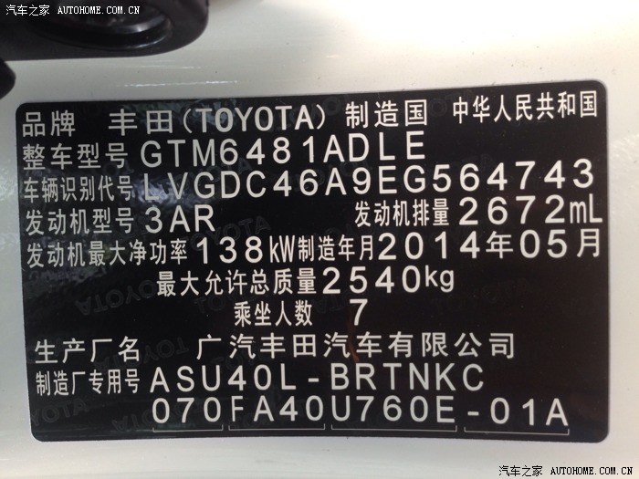 接车到现在才开几百公里,初步测试油耗约合八毛五一公里,自己觉得还可以。空间大是汉兰达的优势没得说,操控还可以,比竟定位在这里(朋友的Q7,X5也开过多次,每个人感觉不同吧)2.7的我觉得动力很不错了,舍得给油起步,加速还是可以的。