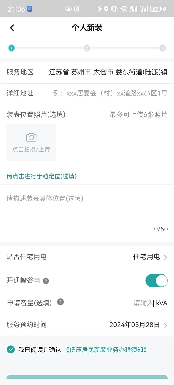 申请后会有供电局的人员联系你预约现场勘察和装电表,装表时师傅会问你接三相电还是两相电,功率选多少(按需选择),虽然M7最大支持7KW慢充,但我从长远考虑还是选择了三相21KW。