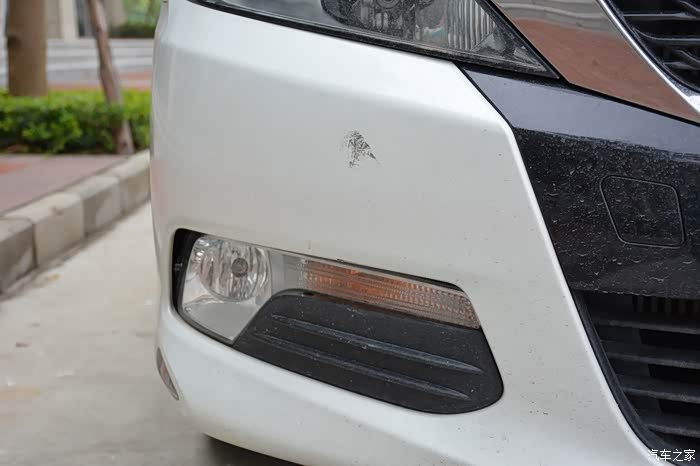 已经不记得是哪一日的早上了,要从地下车位出来,正前方是一条横着的靠墙过道,车右侧是车位的墙体立柱,所以起步之后就是一个右弯,心里想着要离立柱远一点,便往前开出得多一些,还自以为车头与墙面仍有足够的位子,直到保险杠与墙面挤到发出声响了才不可置信的停下车去查看,看到的是镀铬条前的车漆被擦掉了、雾灯上方的车漆被擦花了(不明显),还有保险杠与叶子板的接缝处开了一道小口子。当时心里千万个不爽啊,但事已至此,只有把车倒后一些,发现用力可以把小口子按回去,但刮伤的车漆已无法复原了。