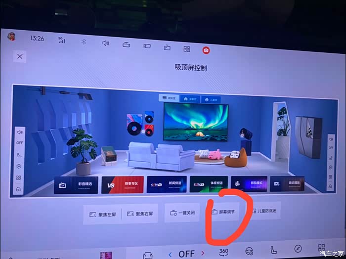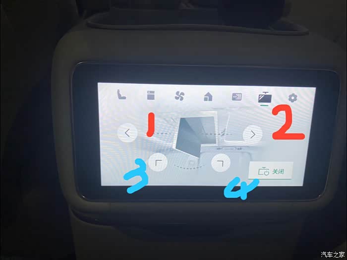 在前排打开后排吸顶屏之后,下方会有个屏幕调节选项。