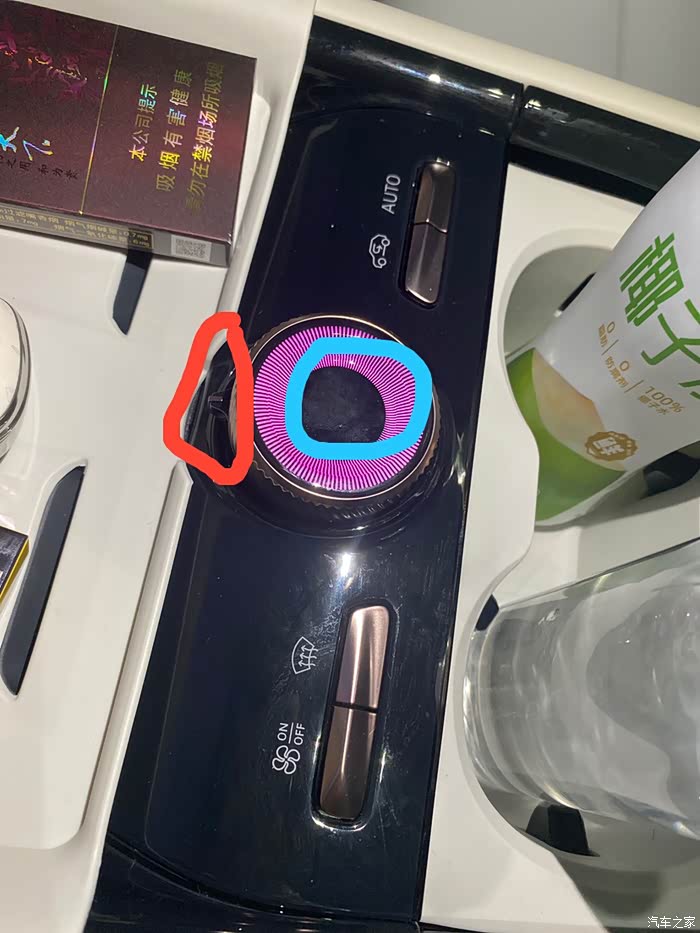 中控旋钮不止可以左右旋转调节音量,上图划红线的小尖尖在播放音乐的时候左右拨动可以切换歌曲上一首/下一首。