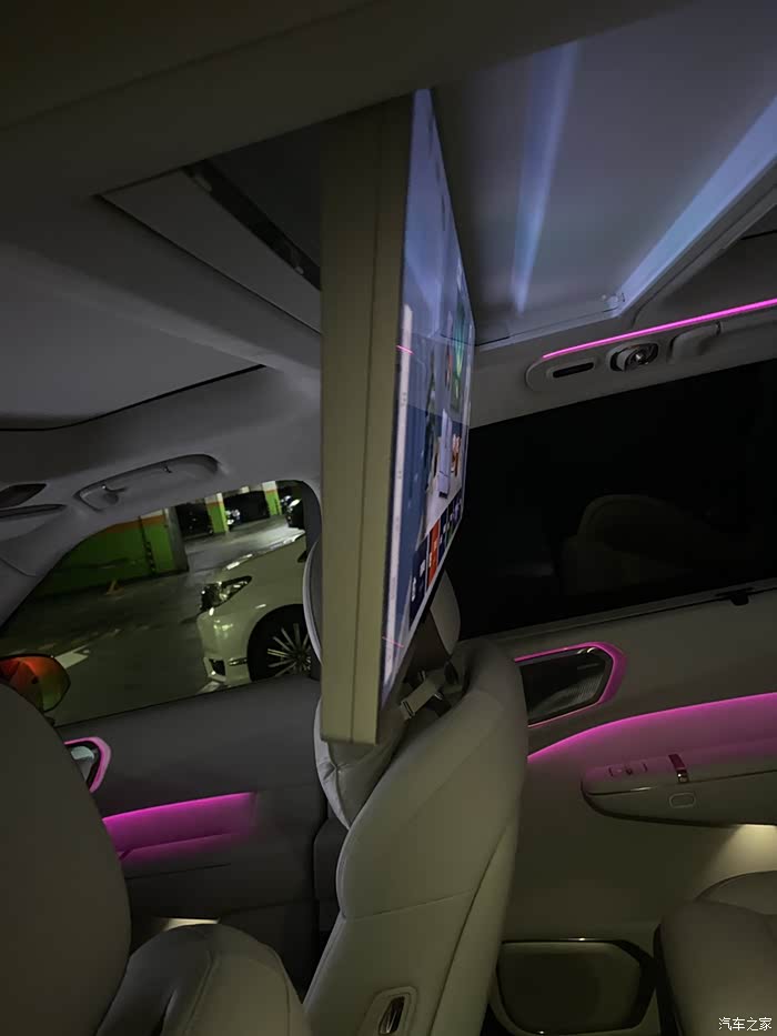 也可以在第二排用冰箱上面的小屏幕进行吸顶屏调节操作。