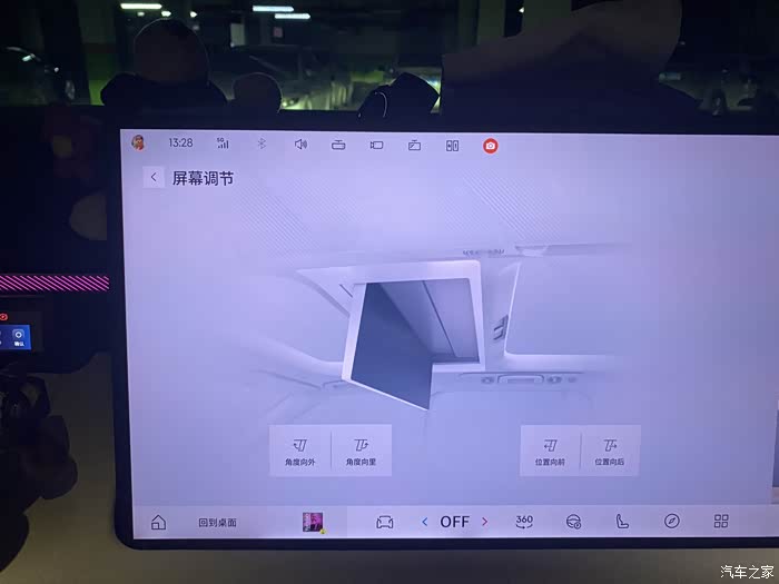 第二个、后排娱乐屏可以前后位置及角度里外调节。