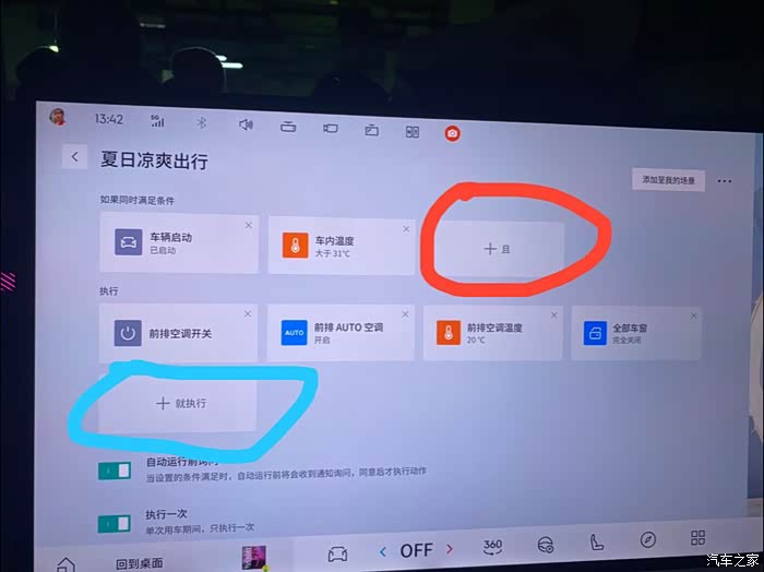 有这样一个场景助手,就不用上车太热开低空调,驾驶一会又得自己去调节了。自动运行,完美!!!