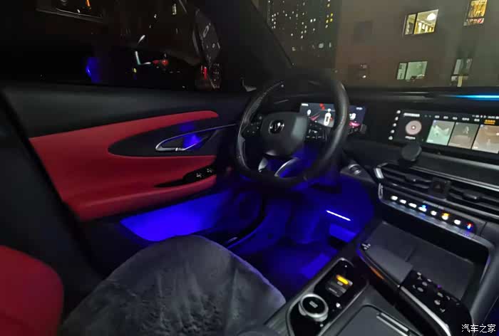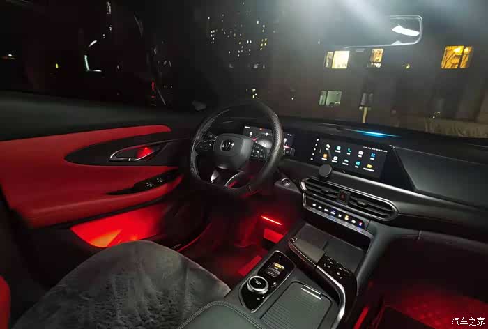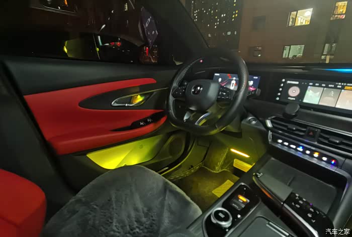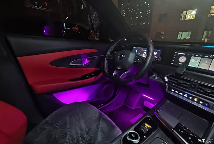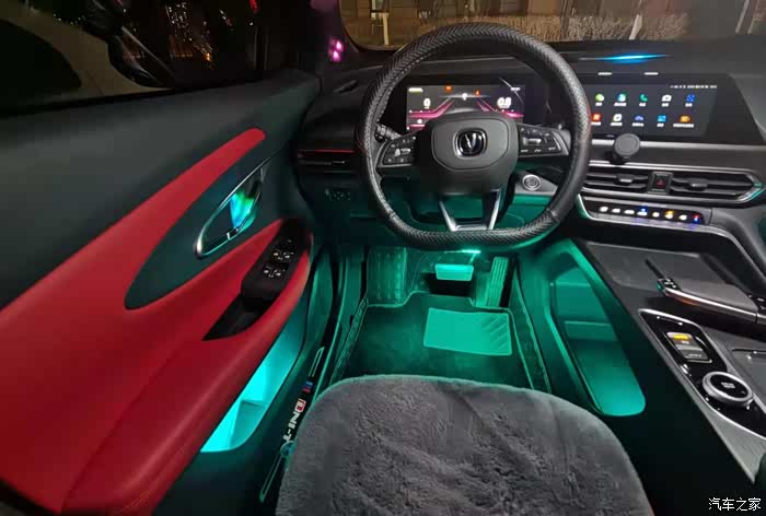 长安4S店的师傅很专业,安装也很细致。尤其是这套氛围灯套装很贴心,使用专用的带有灯珠的门内拉手内壳更换原有位置的内壳,整套安装下来没有打一个孔,这就是原厂专车专用的好处吧。安装完毕后看不到一点痕迹,安装的位置恰到好处,既看不到灯珠,又完美展现了灯光的色彩。整套氛围灯一共安装了十一个位置,分别位于四个车门的内门拉手、四个储物盒、两个前脚窝灯以及驾驶室储物区灯。如果在打开氛围灯的情况下,几乎是看不到有安装过氛围灯的痕迹的。完全不影响车辆内饰的美观性。