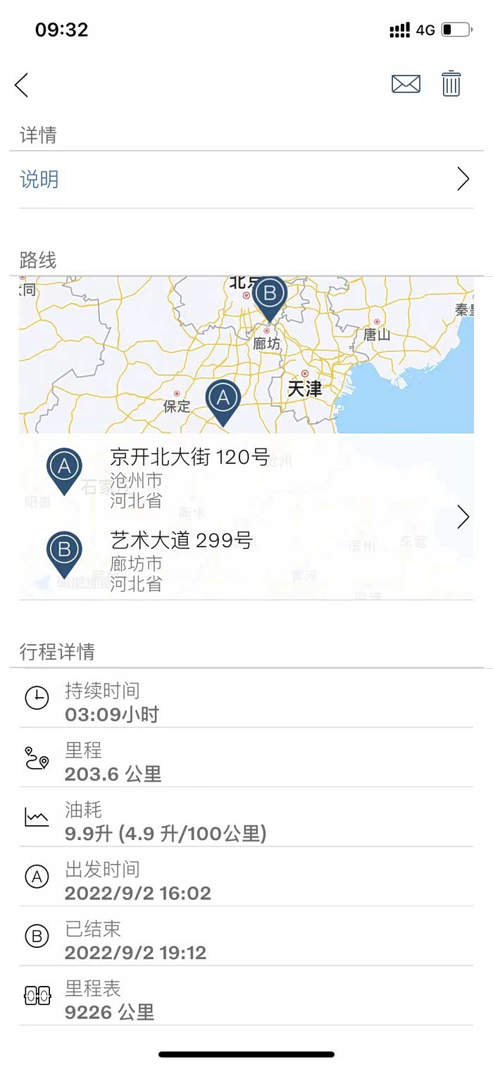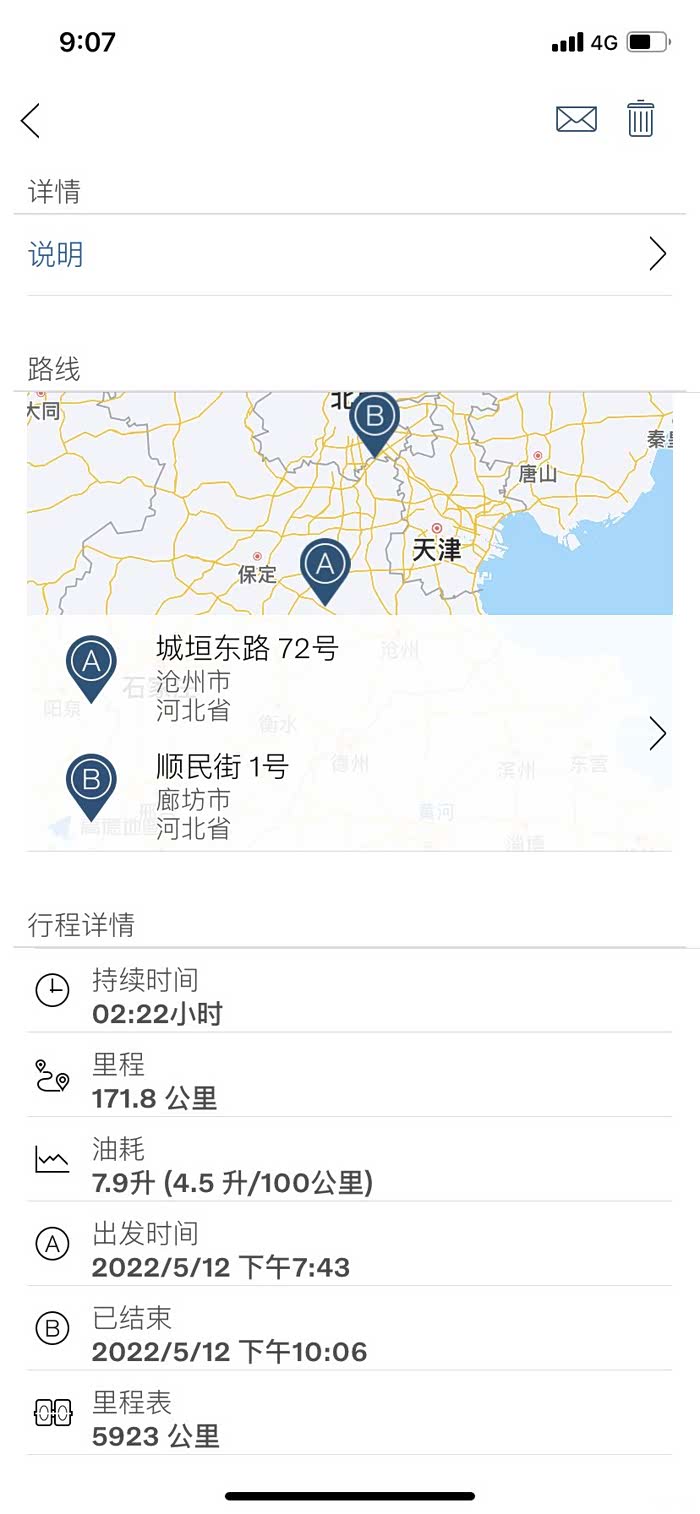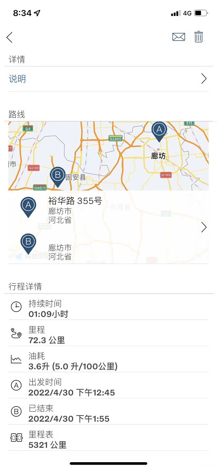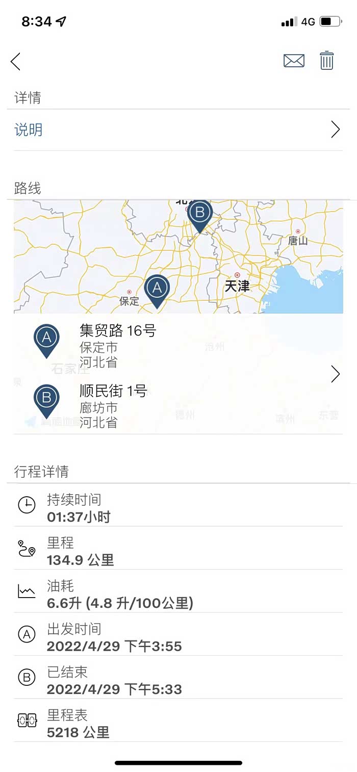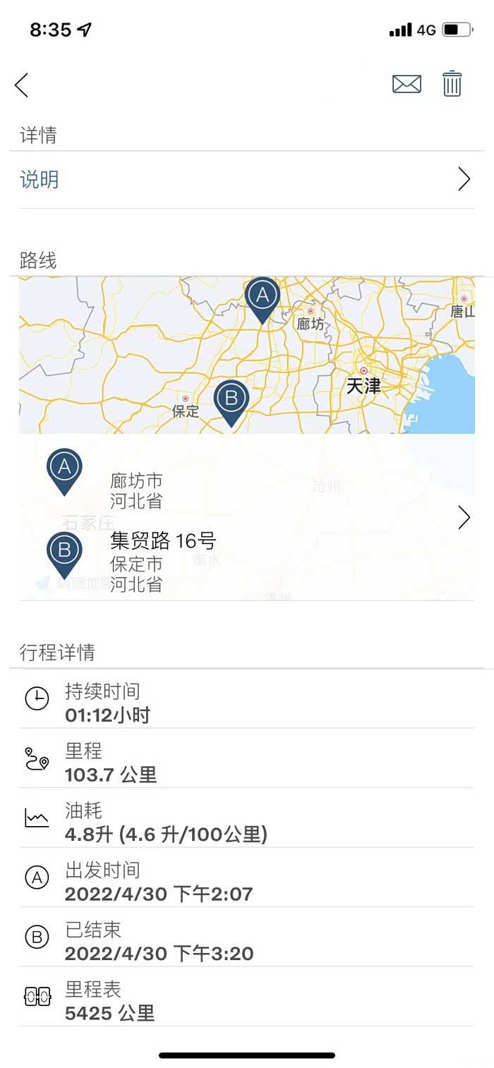 (2)每个人用车环境不同,如果跑的高速多,S60的油耗可是非常的香,我也实际测试过,城市快速路及国道等一般在6左右,高速(定速巡航100)一般百公里油耗5升,最低开出过4.5。小沃真的会给你非常惊喜的表现。举两个行车日志上的记录。以下图片全部是行车日志低于5以下油耗的截图。